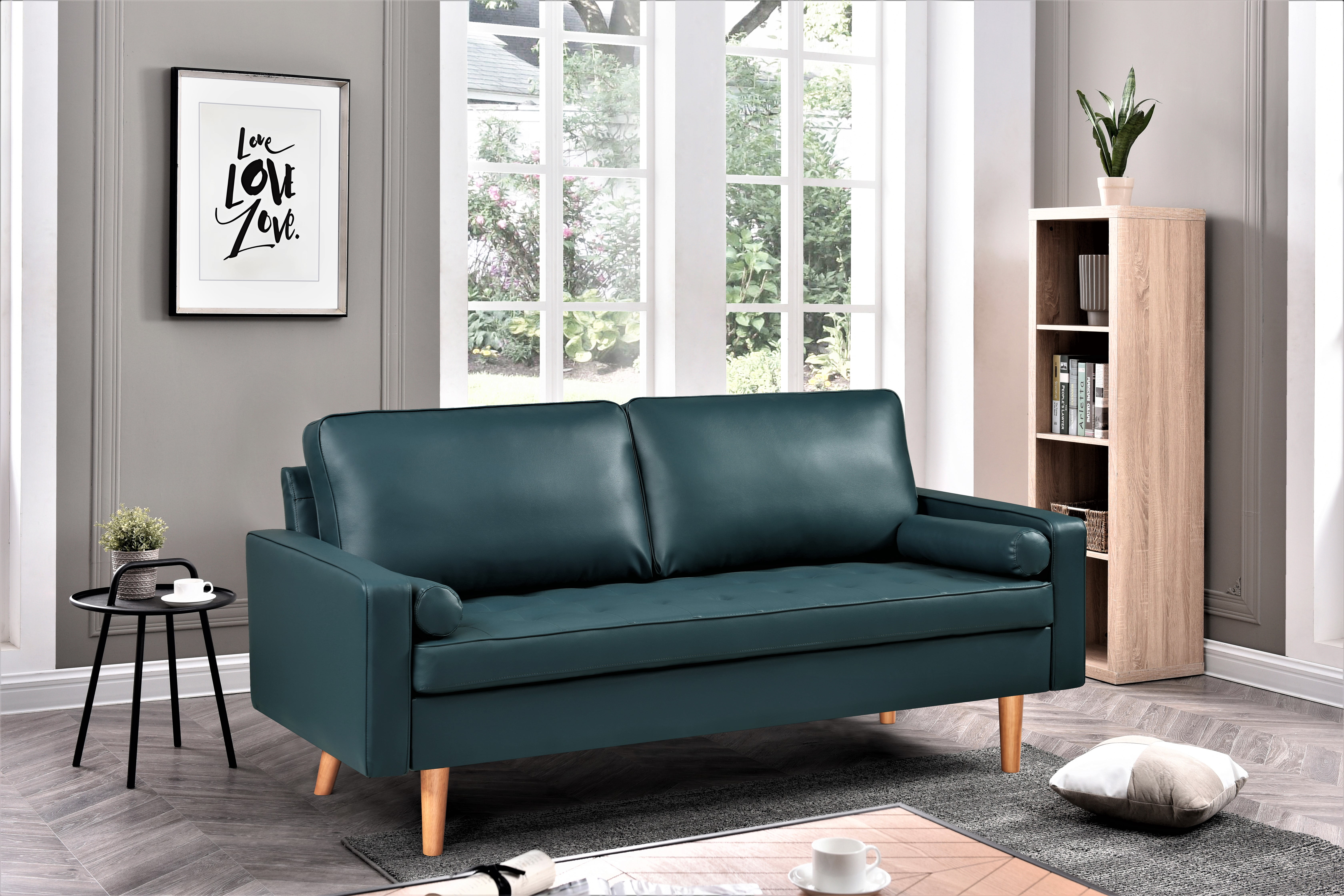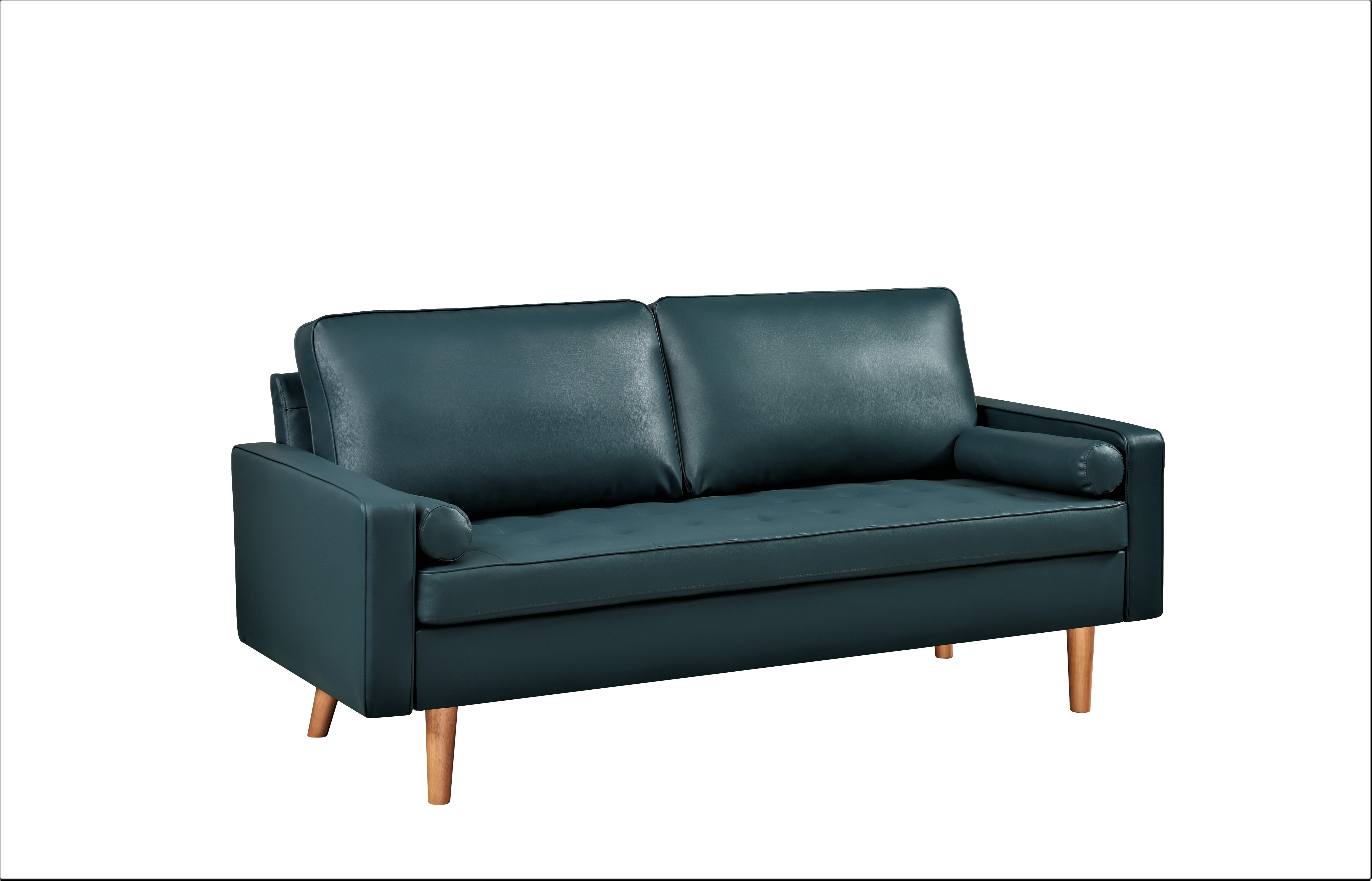 US PRIDE FURNITURE Partone 69.7” Vegan Faux Leather Square Arm Sofa -Dark Ocean Blue