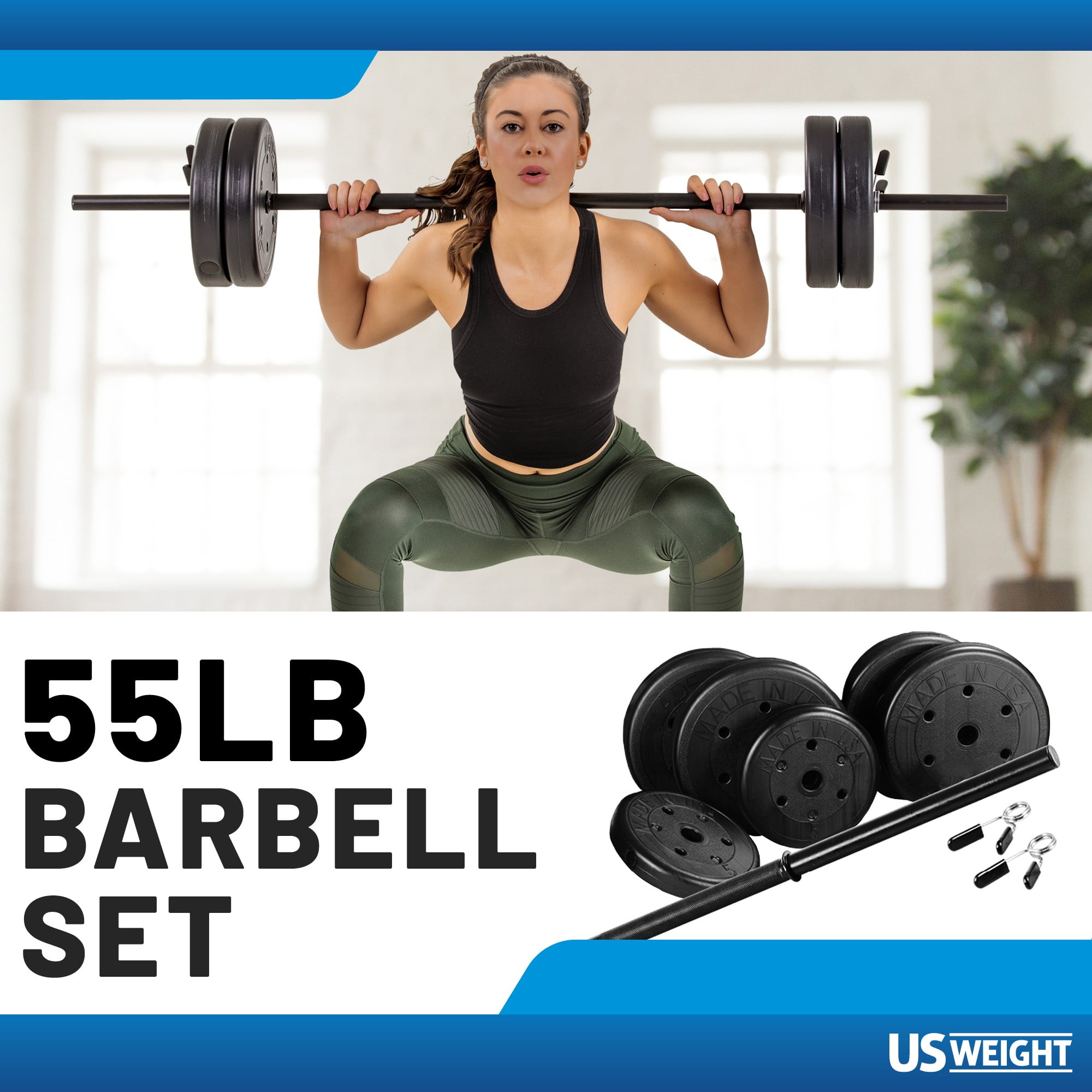 US Weight 55 lb. Barbell Weight Set with 3-Piece Threaded Barbell Bar, Two Locking Spring Clips