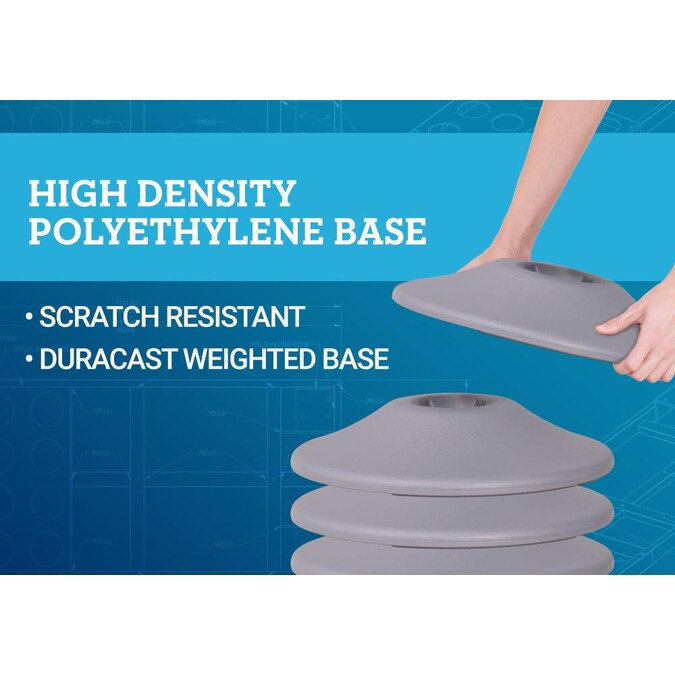 - Base is made of scratch-resistant high density polyethylene filled with a very high strength concrete