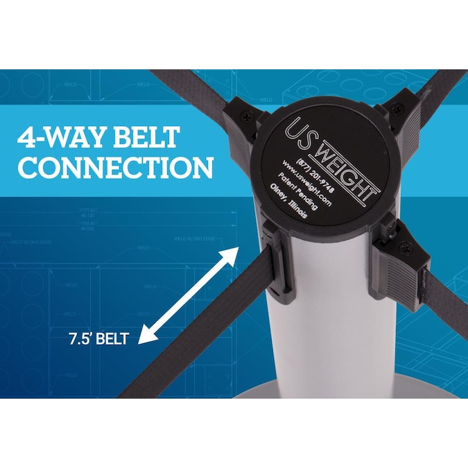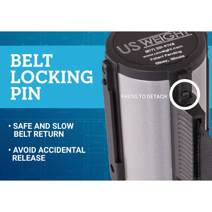 Safety comes first for US weight, and this priority is executed flawlessly with the premium steel stanchion with an extended 7.5-Foot pro retractable belt. This classic steel stanchion is perfect for safely controlling crowds, directing the flow of foot traffic, or protecting a closed area for construction or cleaning. Made in the united states, the 38.5-inch tall steel post features a Sherwin Williams pro coat finish. Unlike other stanchions that begin to wobble over time and require endless repair, the US weight premium stanchion will never lean or require maintenance due to our patented Sta-straight technology. Designed with four points of contact under continuous tension plus a high-strength compression collar, this spring-tension system keeps the post upright even after extended use. This stanchion also features innovative insecure 5-second setup and tear down that requires no tools for easy twist-and-lock assembly. This stanchion features a pro belt cassette with a dual-braking system for slow and safe belt return. The post also features 3 belt receptacles to facilitate a 4-way connection to other posts. These receptacles feature a spring safety locking button to keep the belt securely fastened to the post and prevent accidental belt retraction. The belt end is compatible with most major stanchion brands allowing you to connect to the posts you already have. The base of the premium stanchion is made with durable, scratch-resistant high density polyethylene and filled with a very high strength concrete. On the bottom of the base are no-skid, non-marking rubber feet keeping the post in place. Easily customize these stanchions to fit your need with two different post and base colors and nine belt options to choose from. A wheeled stanchion cart holding up to 12 units is available, making for easy storage and deployment. Stanchion cart model #U2509. To advertise sign age, the premium stanchion is only compatible with #U2507 sign holder (sold separately).