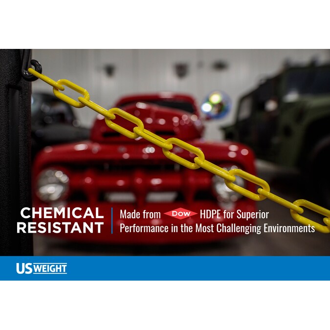 US Weight chain is produced in the USA using “state of the art” manufacturing and premium materials. The result is chain with a brighter, more consistent color that lasts longer. Our sun shield UV protection package is the industry leader. Made from DOW chemical’s high-density polyethylene gives US Weight chain superior strength and finish. High-density polyethylene is durable, safe and resistant to many common chemicals. The 2″ link size makes for an effective visual barrier.