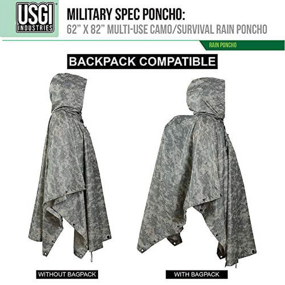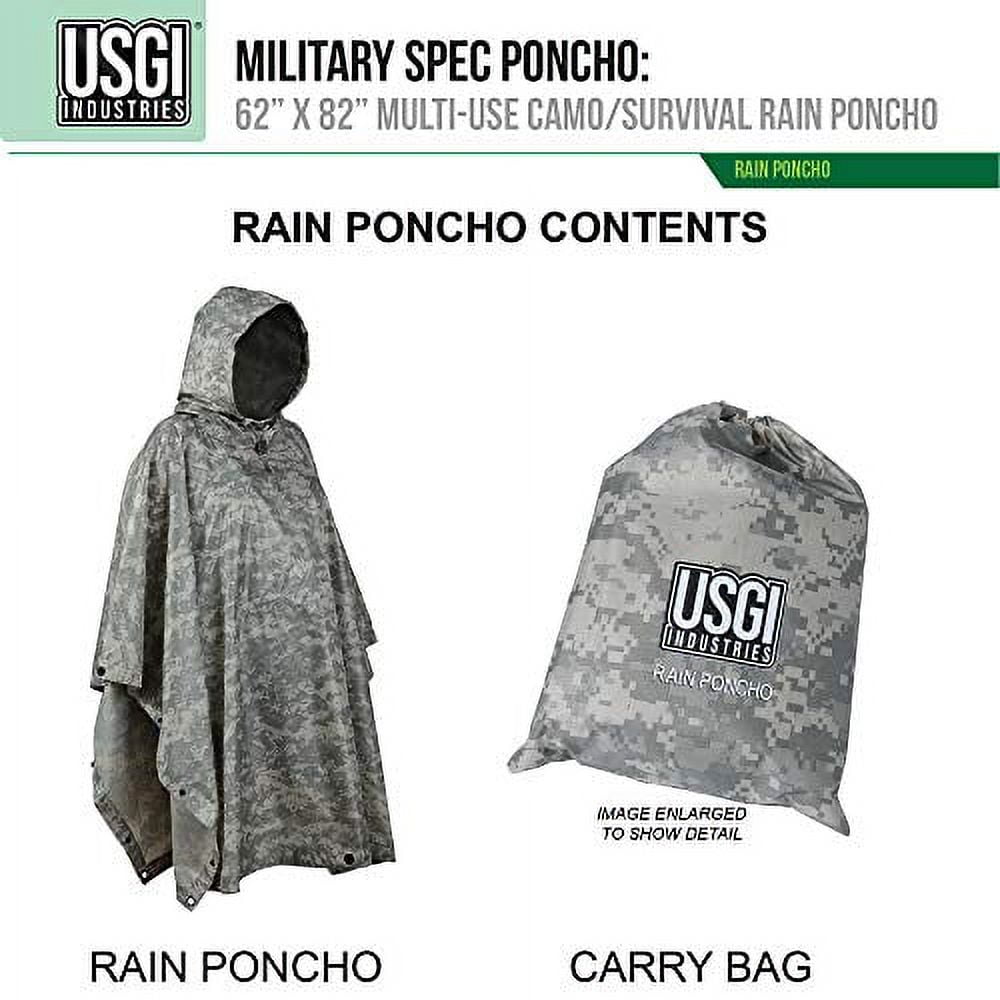 USGI Industries Military Style Poncho | Emergency Tent, Shelter, Survival | Multi Use Rip Stop Camouflage Rain Poncho (ACU)