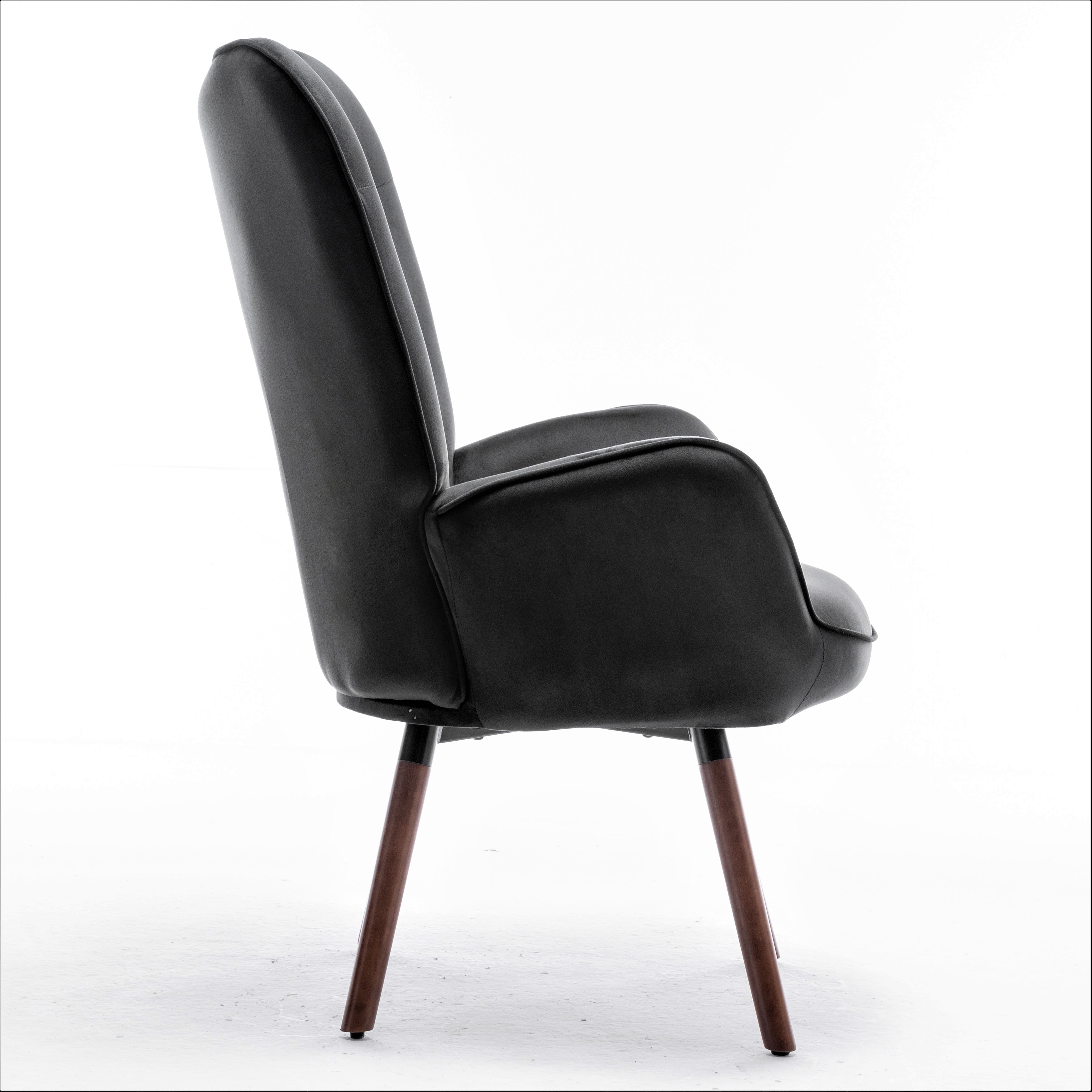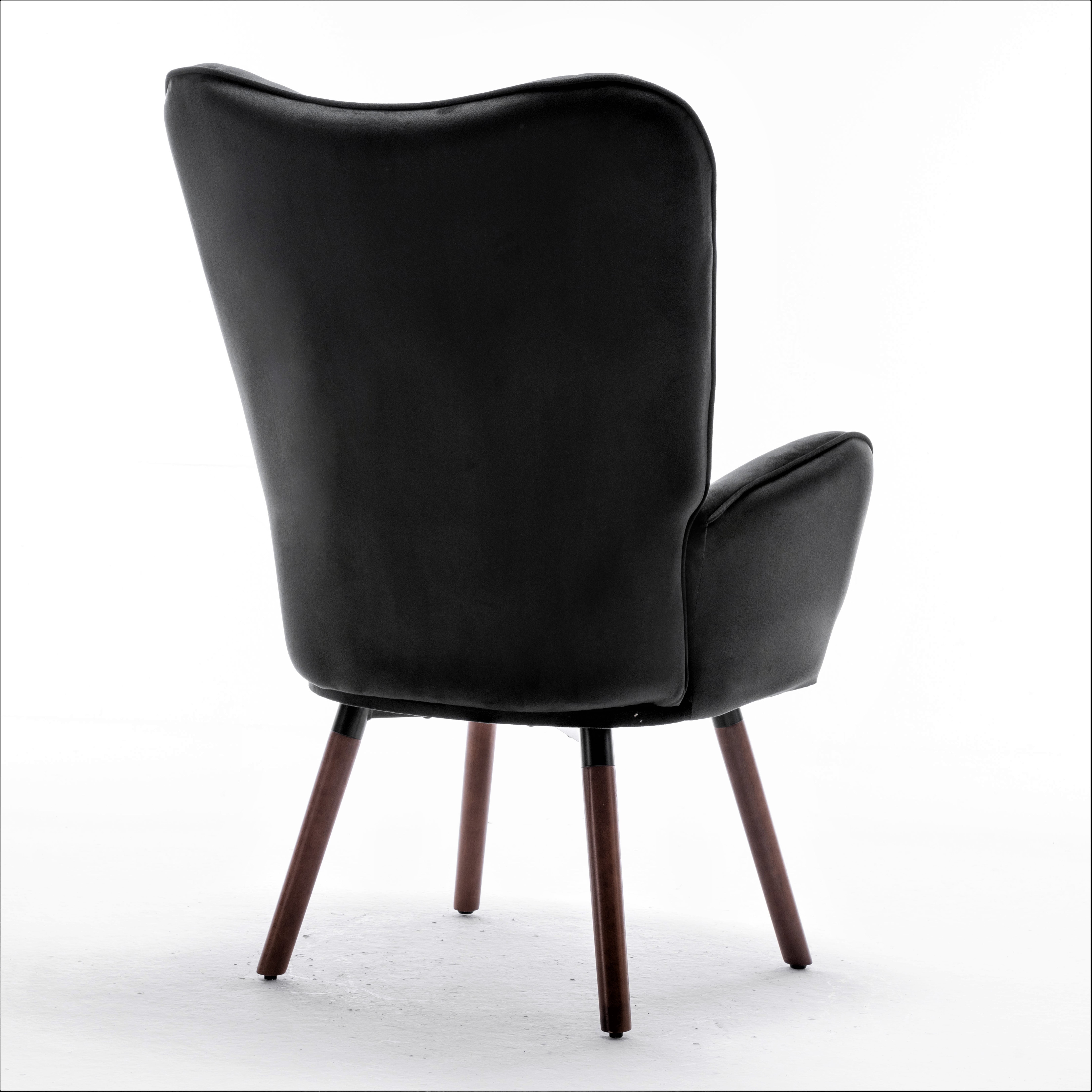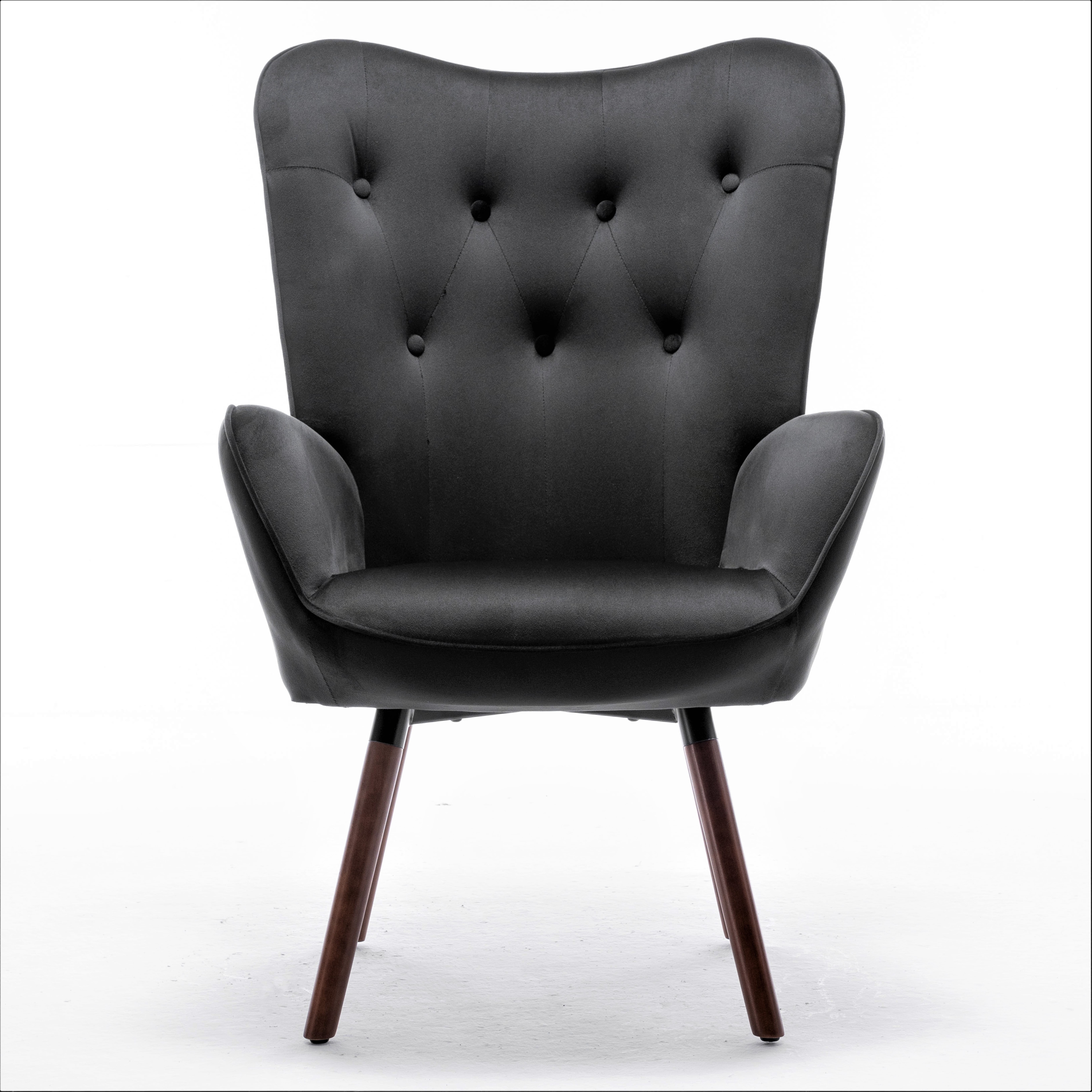 This accent chair features a traditional wing back design. The modern and chic design armchair, drawing on iconic mid-century silhouettes, this button-tufted armchair is a great option for your space, whether it’s adding extra seating in your living room or bed room or rounding out your home office setup. The frame is made from soild wood, and it rests on four splayed legs with a dark brown finish. This chair is wrapped in foam-filled polyster fabric for a padded touch while you kickback and stream your favorite show. Plus, this piece features flared arms, and a curved back that rounds out its modern look.