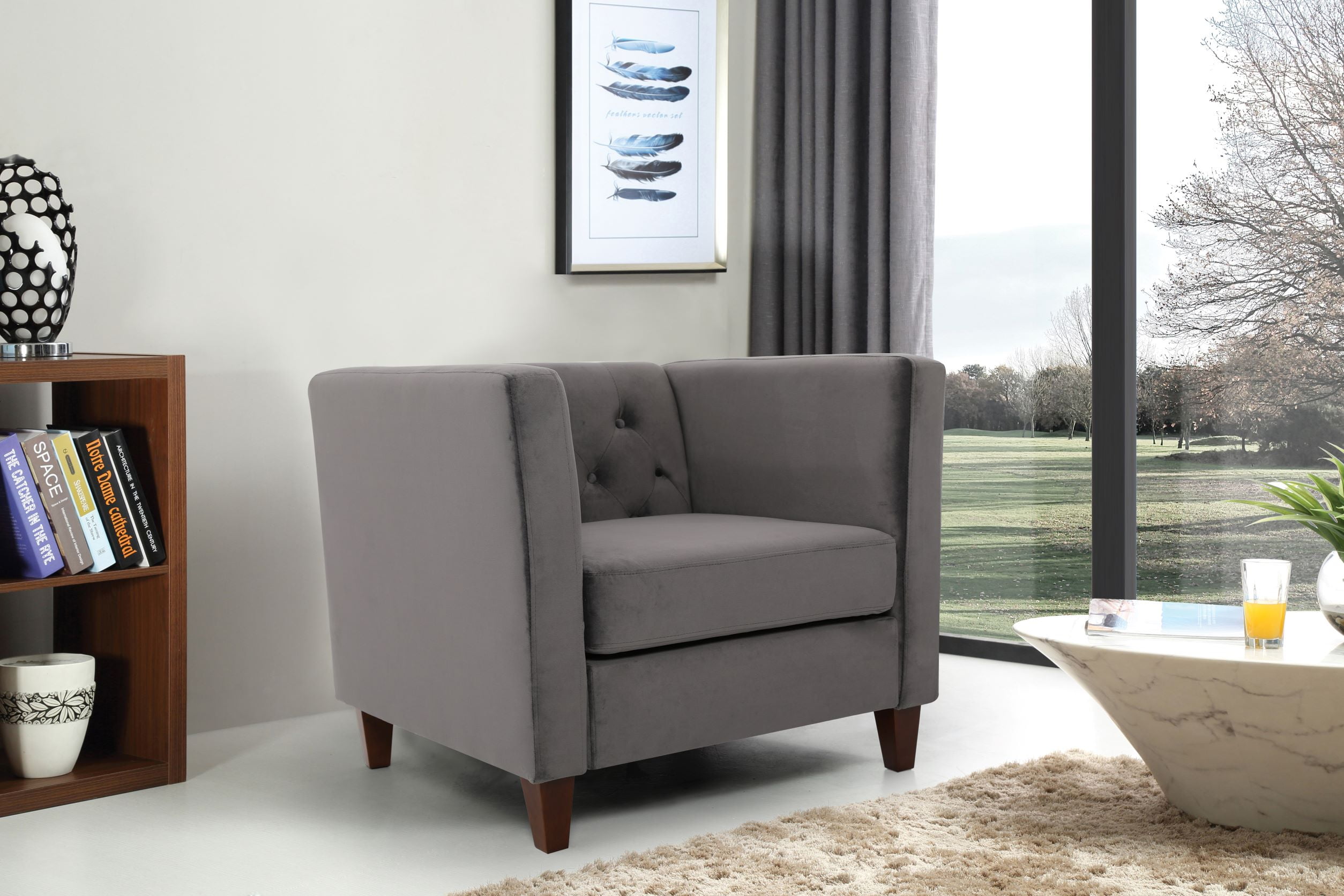 Uspridefurniture Omnisphere 33.07” Velvet Square Armchair -Gray