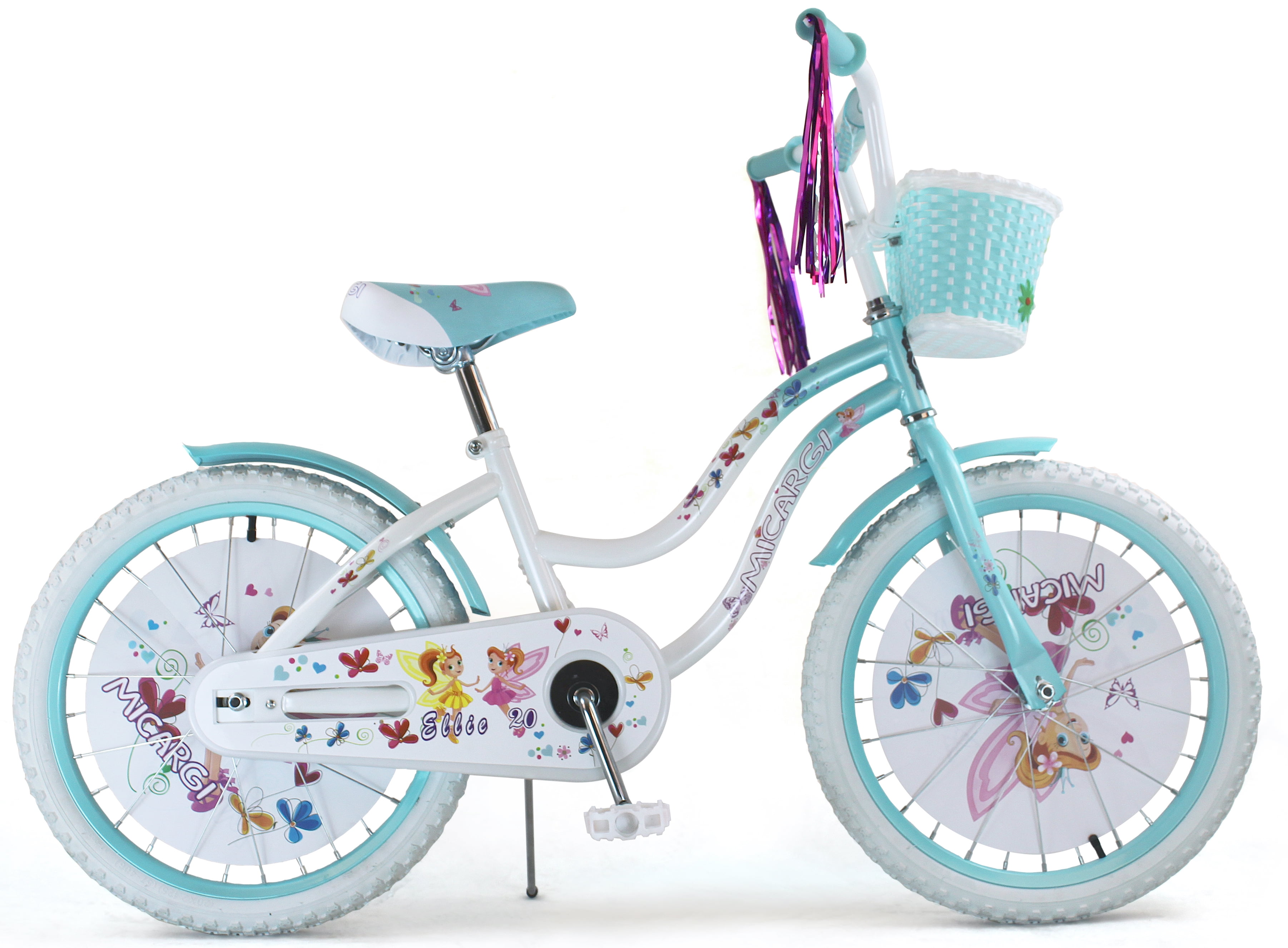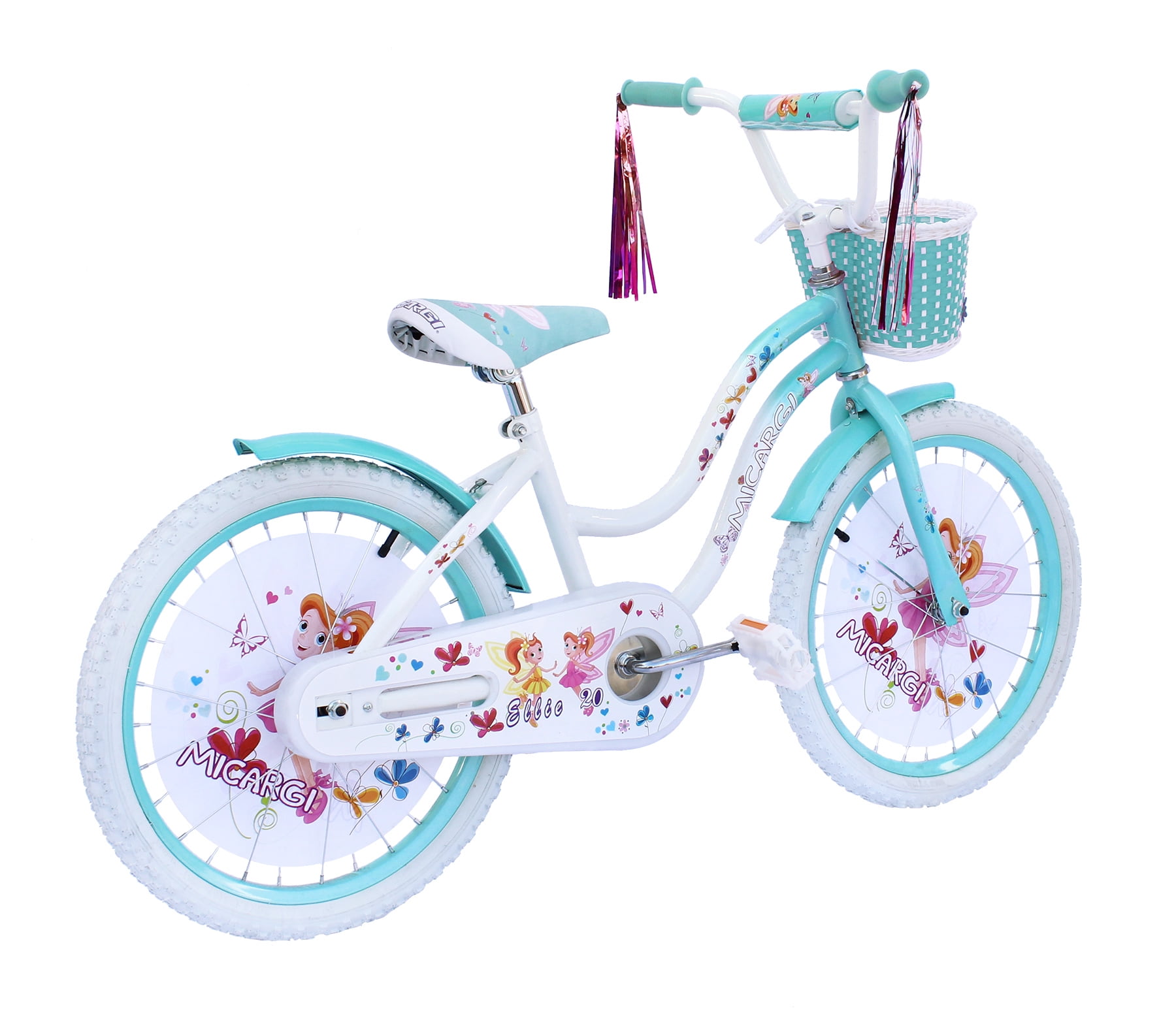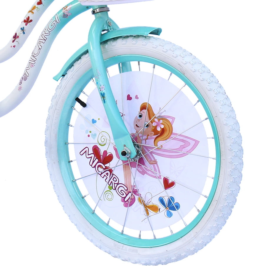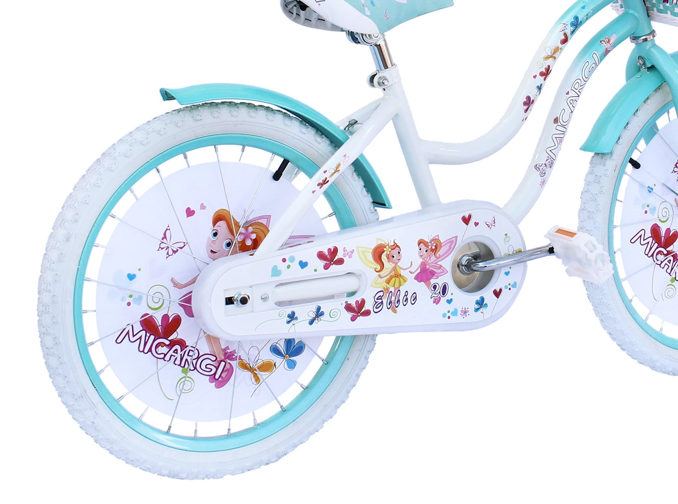 USToyOutlet 20″ Cruiser Steel Frame Bicycle Coaster Brake One Piece Crank, White Full cover Chain Guard, Baby Blue Basket, Fenders & Rims, White Tire Kid’s Bike – White/Baby Blue