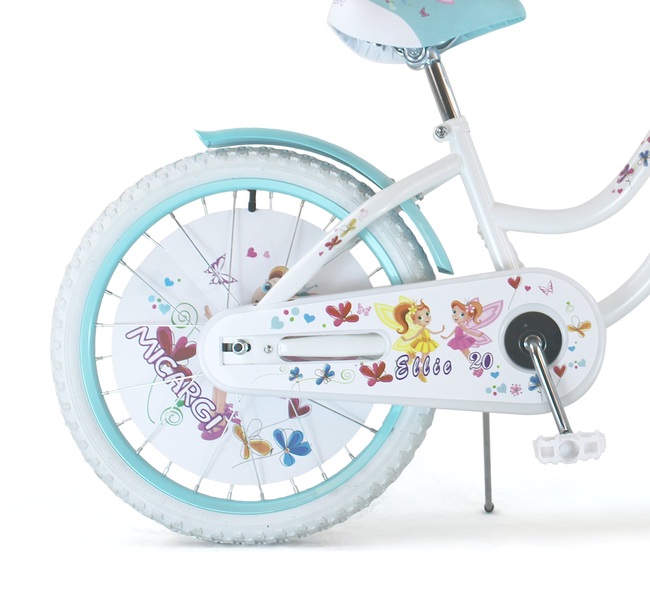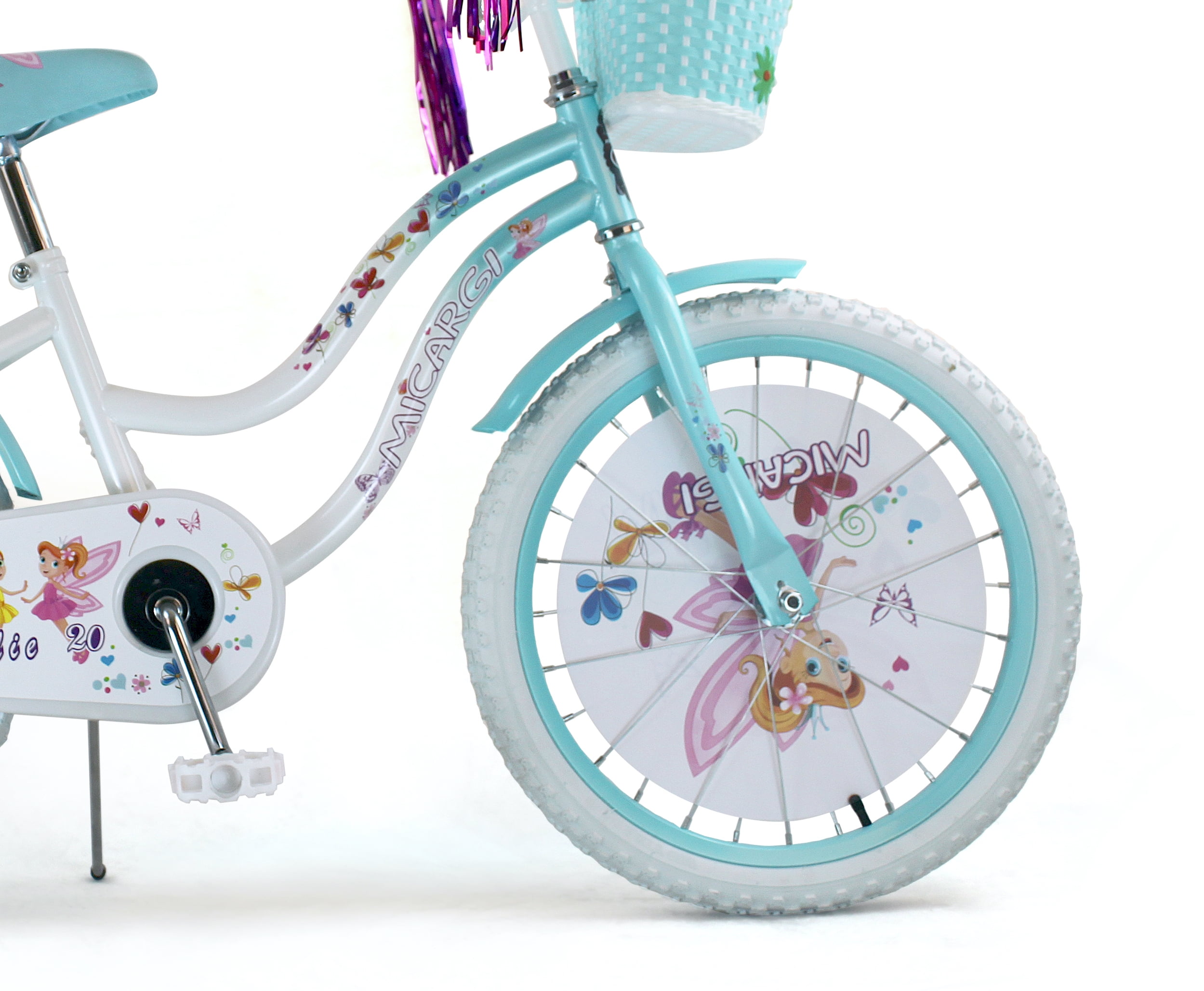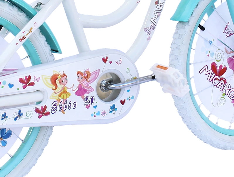 USToyOutlet 20″ Cruiser Steel Frame Bicycle Coaster Brake One Piece Crank, White Full cover Chain Guard, Baby Blue Basket, Fenders and Rims, White Tire Kid’s Bike – White/Baby Blue