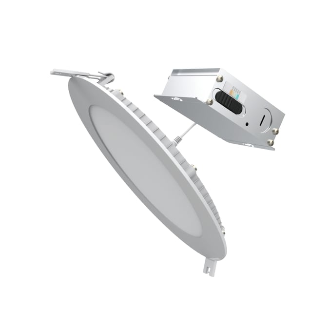 The Flat Panel Color Selectable Canless LED Recessed Lighting Kit comes with 6 lights and makes it easy to add downlights anywhere you want. No need for an existing recessed can or junction box in the ceiling. Simply cut a hole in the drywall based on the instruction sheet dimensions stated, run your Romex cable from the direct line voltage to our canless retrofit kit thru the knockout to the quick connect terminal, daisy chain additional Romex from the quick connect thru the knockout to your next canless retrofit kit, then push the spring loaded clips thru your existing hole. The springs will pull up on the retrofit kit for an airtight seal. The load profile design makes it the perfect option for low plenum clearance for indoor and outdoor residential, hospitality, commercial and multifamily applications with confined, hard-to-reach spaces such as closets, attics, bathrooms, hallways, stairwells, elevators, soffits, porches, and entryways.