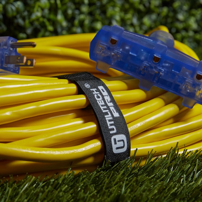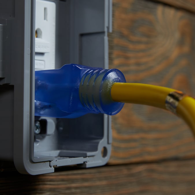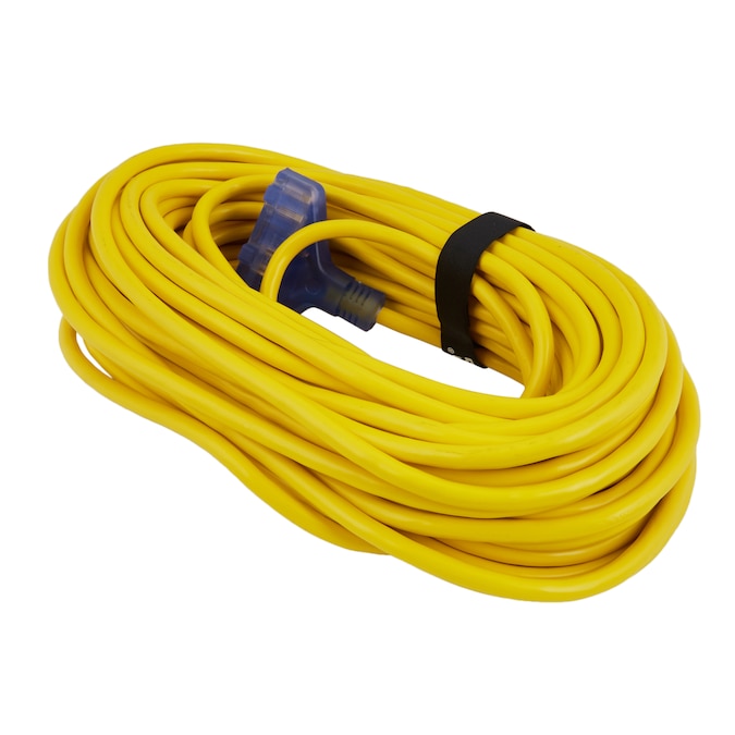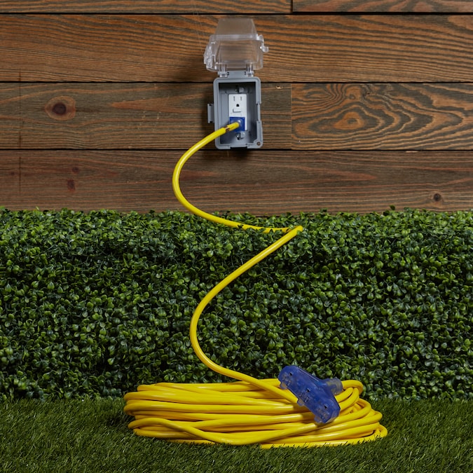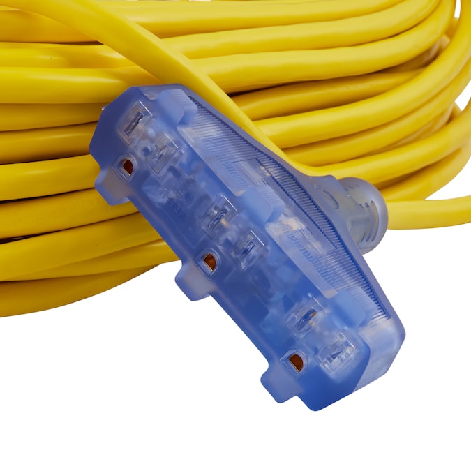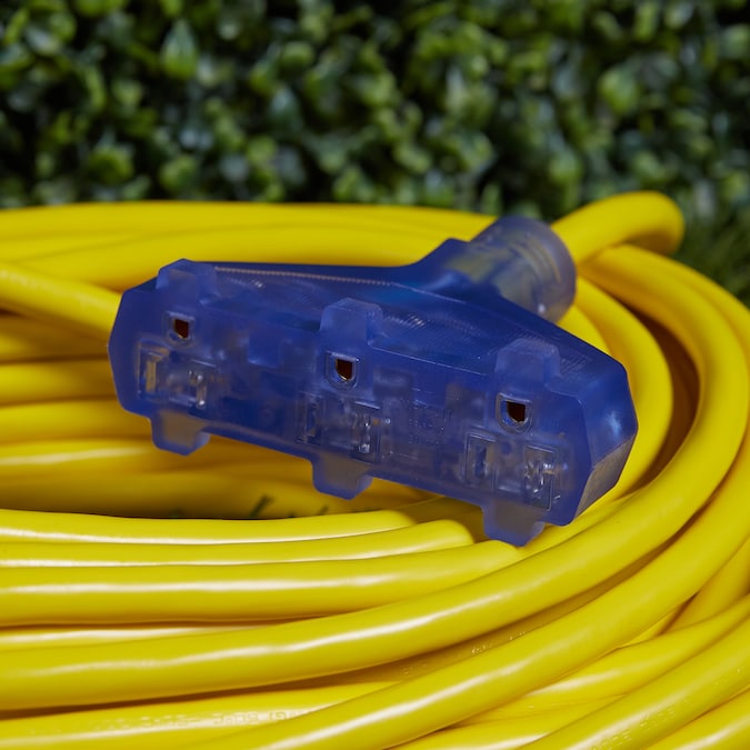 100-Ft 15-Amp 3-outlet 12-gauge yellow outdoor extension cord.