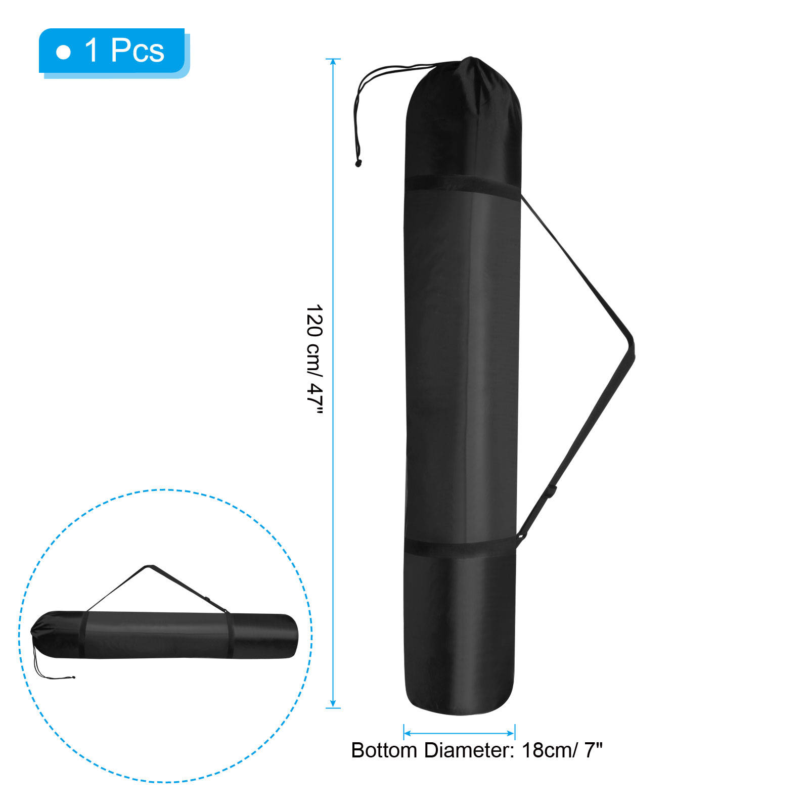 Color: Black Material: 210D Oxford Cloth Overall Length: 120 cm/ 47 inch Bottom Diameter: 18cm/ 7 inch Packing List: 1 x Camping chair replacement bag
