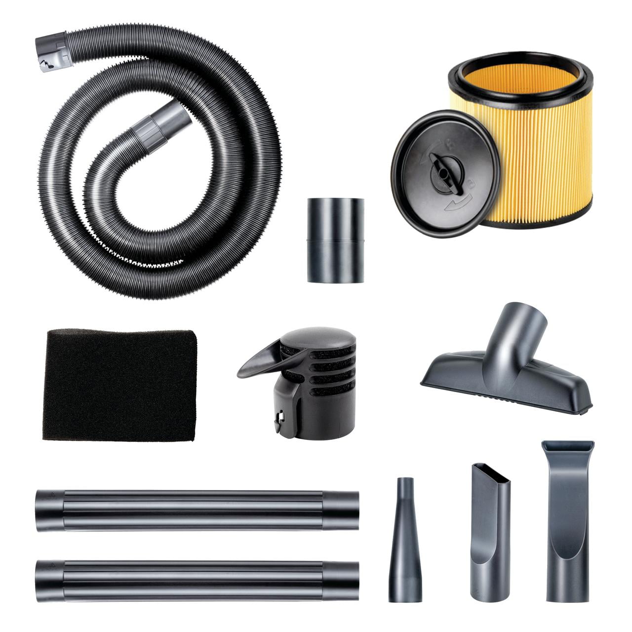 Converts to Detachable Blower with One-Hand Release and Operation with Max Blowing Speeds of 210 MPH 17-Foot Cleaning Reach with Hose and Power Cord Complete Vac Organization with On-Board Hose, Cord and Accessory Storage 10 Accessories, including Blower Adapter and Concentrator Nozzle Large Drain Port for Quick Emptying Large Dust-Sealed On/Off Switch