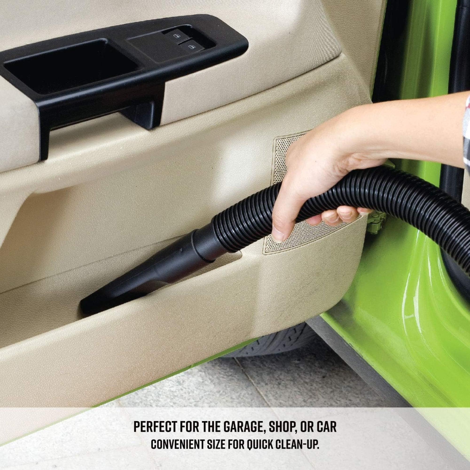 Powered by a strong 2 peak HP motor, it’s great for automotive cleaning, as a crevice cleaning tool for hard to reach areas, wet/dry messes. You name it, the Vacmaster can take care of it! A great size to carry for quick cleanups and stores easily. Equipped with an eight-foot power cord that conveniently wraps up, a foldable top handle for easy transport, and a compact capability with on board accessory slots. No assembly required, auto shut-off prevents over flow.