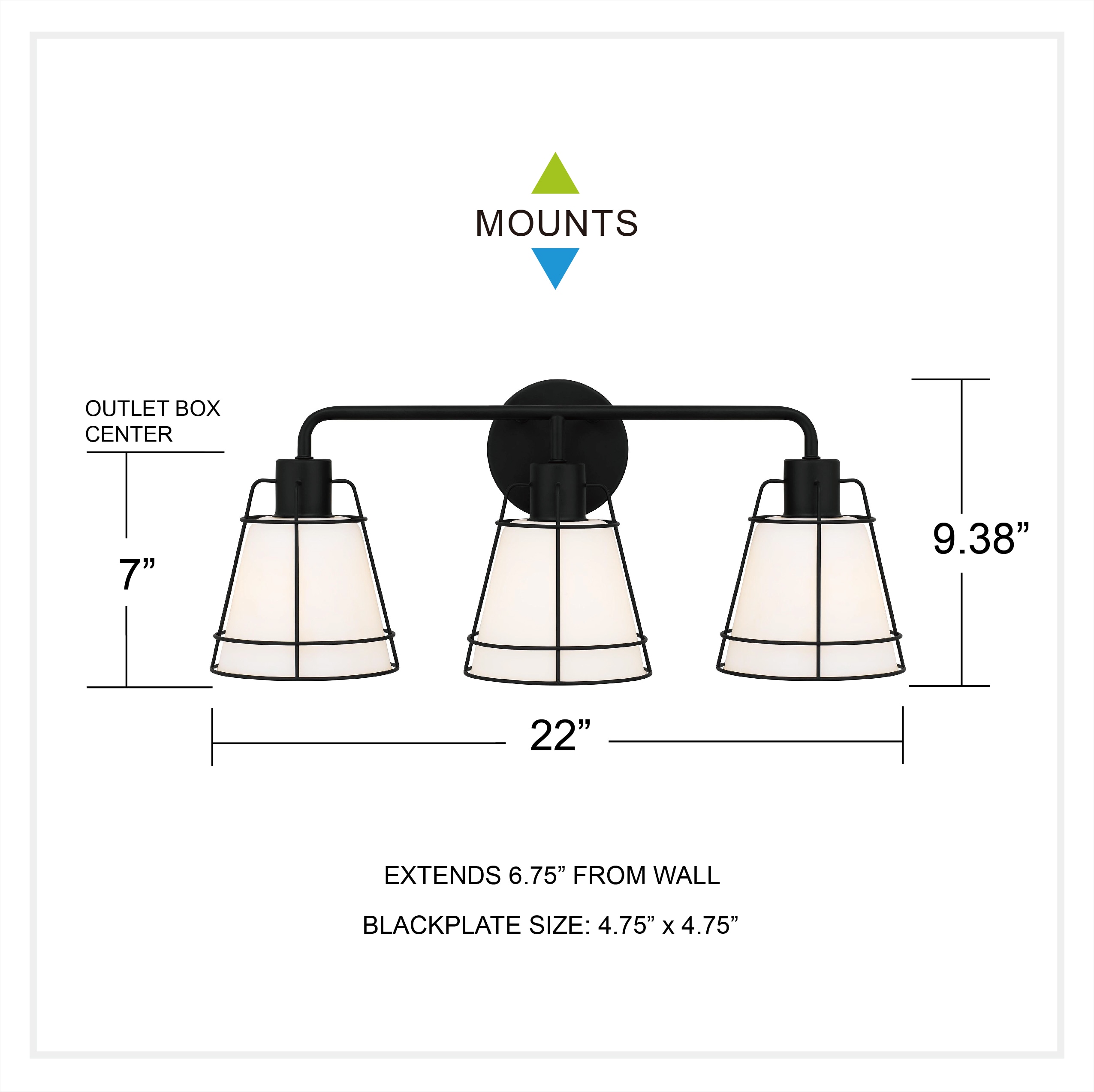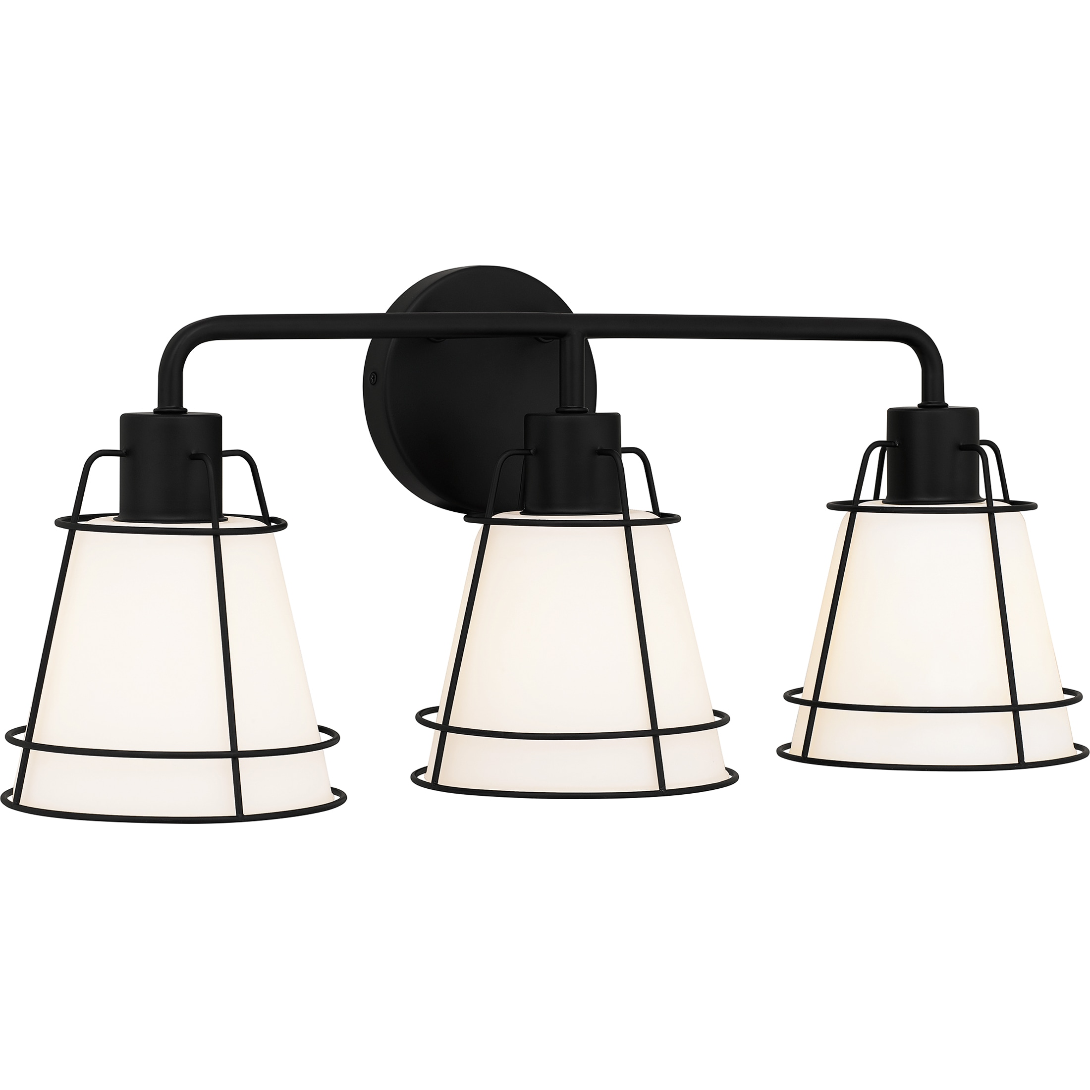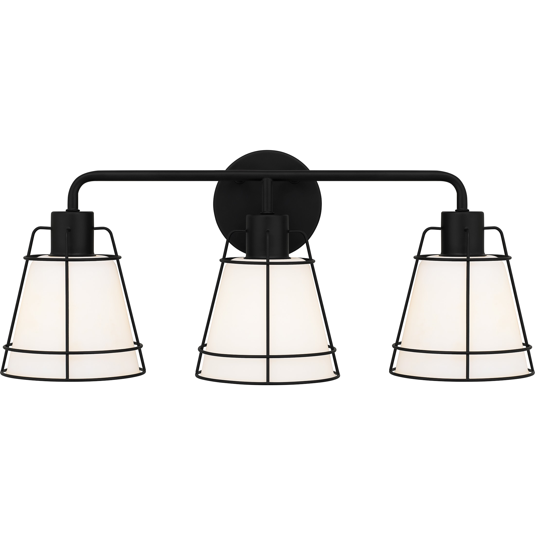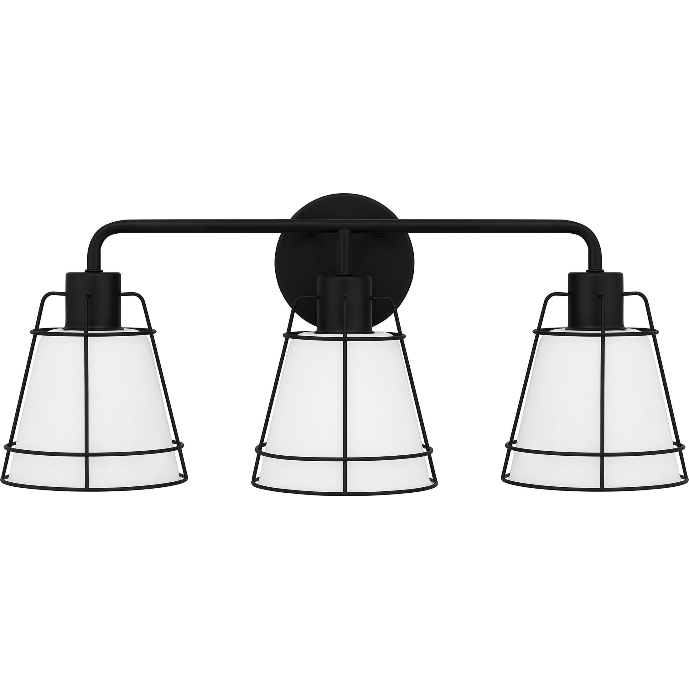 Transform your space with our three-light matte black vanity light, featuring a chic cage design and white frosted glass shades. Elevate your ambiance with this stunning fixture, offering a blend of modern style and timeless sophistication. Whether you’re renovating or just looking to update your space, this vanity light offers an easy and impactful way to enhance your bathroom’s look and feel. Easy to install and built to last, it’s the perfect upgrade for your space. Shop the rest of the Valencia collection for one, two, three, and four-light vanity light options.
