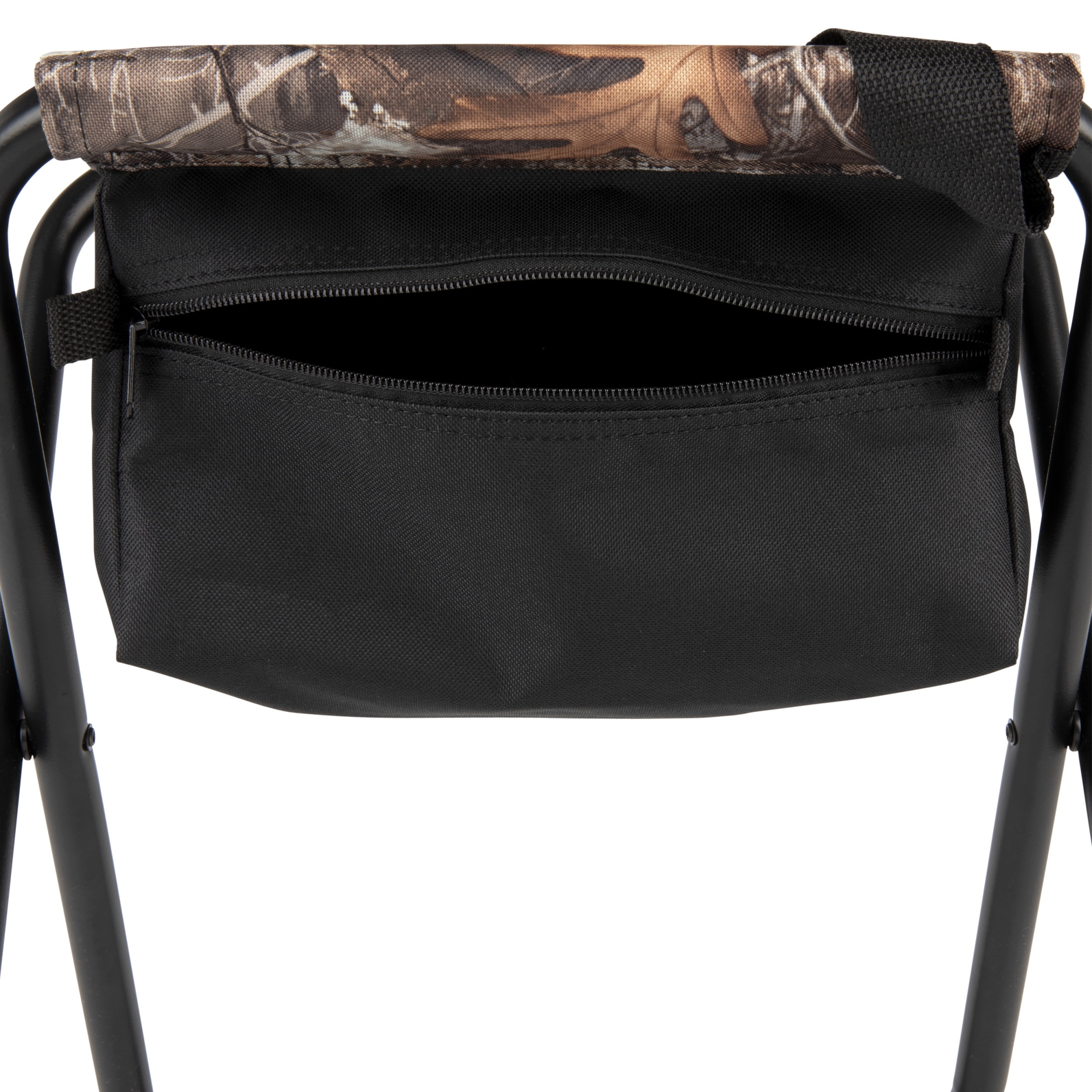 Under seat storage compartment Durable steel frame and polyester fabric Compact folding for easy storage and handling Carry strap for quick transport Weight capacity: 225lbs Vanish Folding Seat, Realtree Edge, Portable Hunting Blind Seat, Steel, Folding Stadium Seat Style Model 5914 Realtree edge design, brown color.