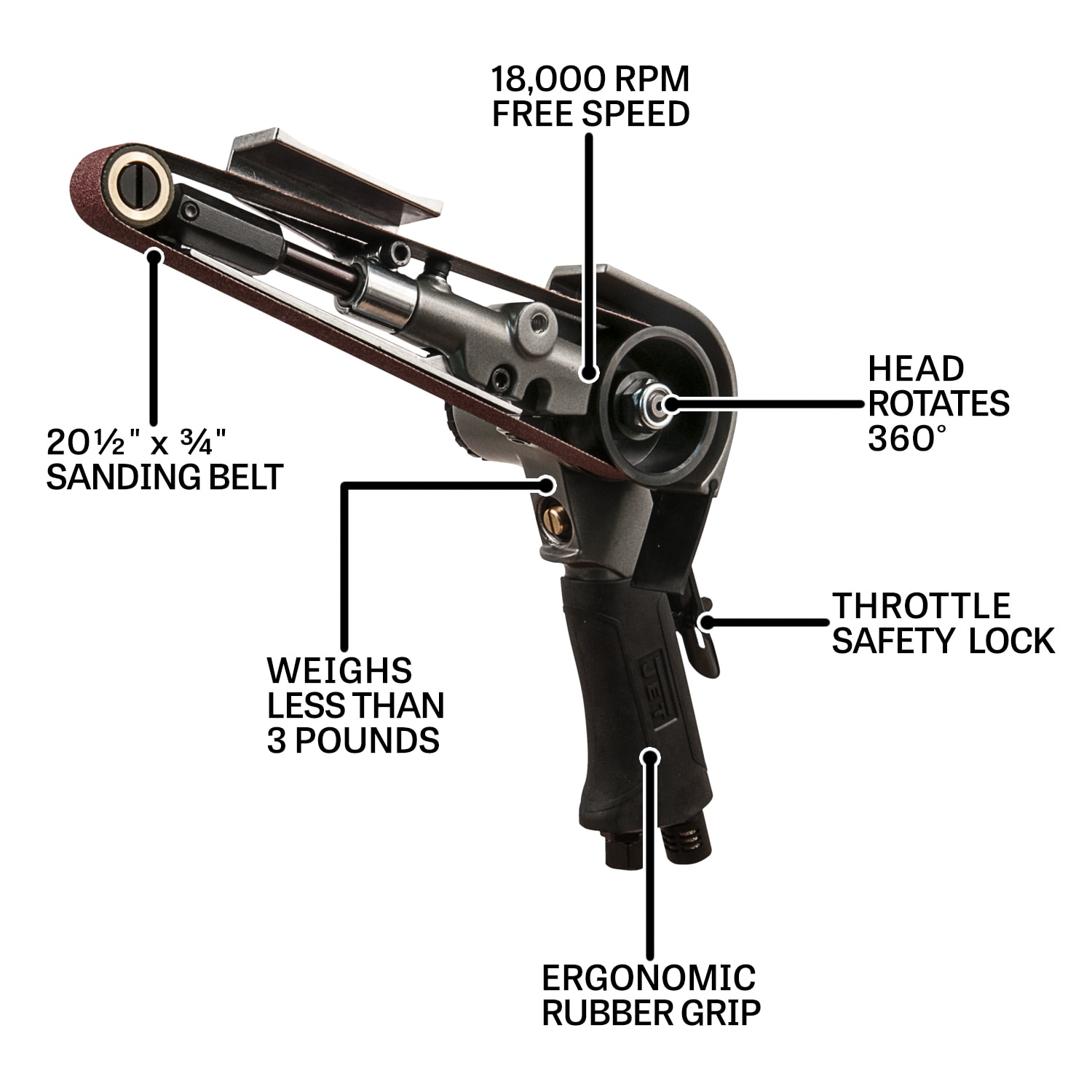 The JAT-751 Mini Belt Sander makes getting into tight areas and sanding in difficult angles easy. The 360-degree head allows for just the right angle to get your job done.