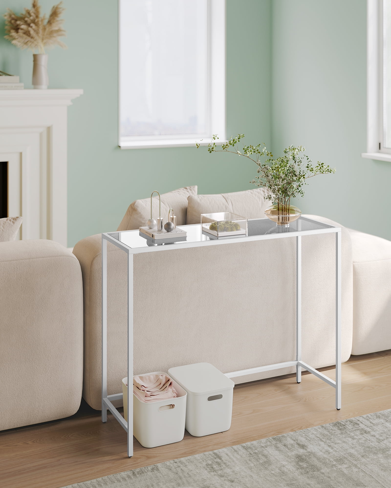 VASAGLE Console Sofa Table Entryway Table Glass Steel, White