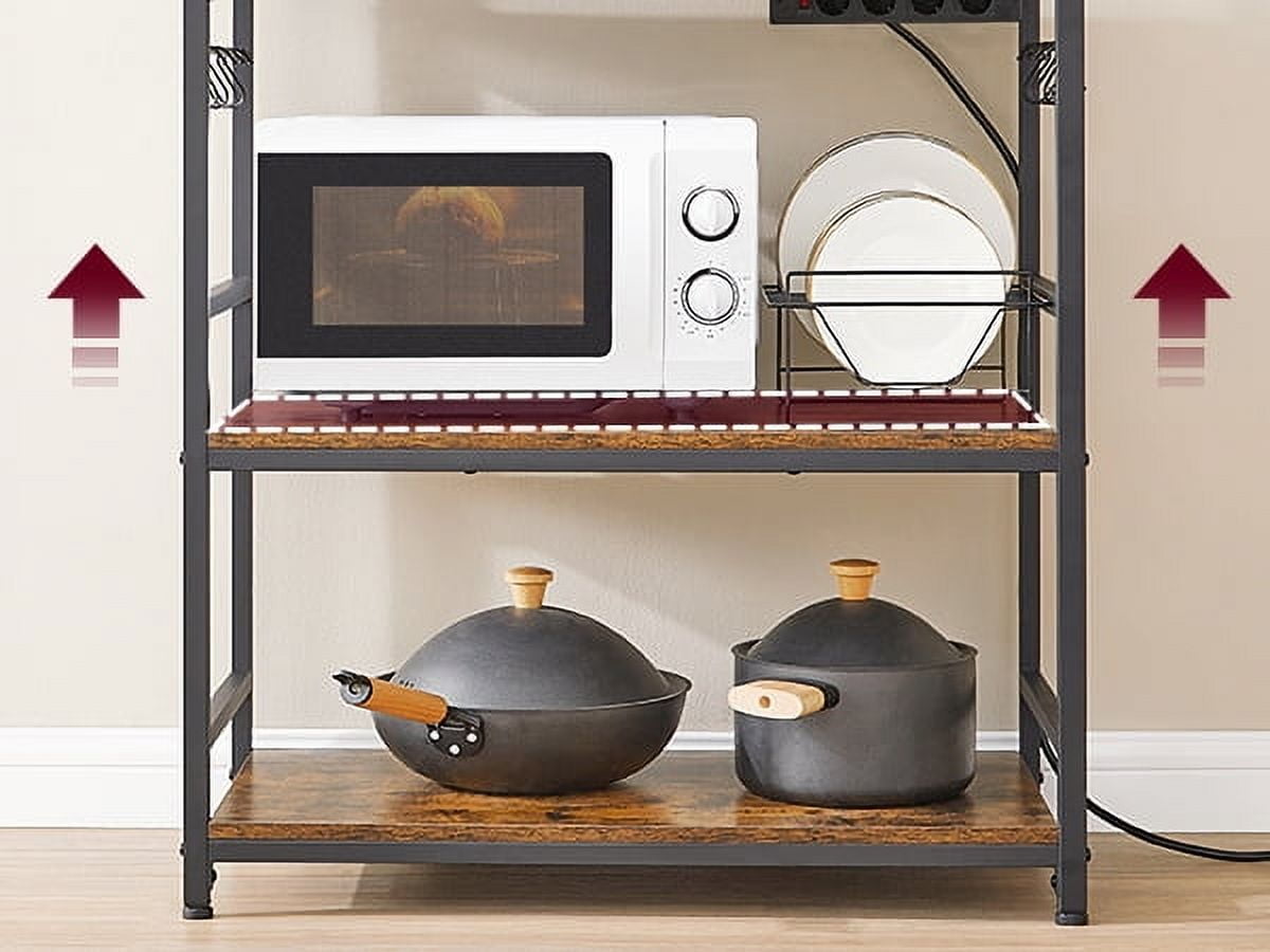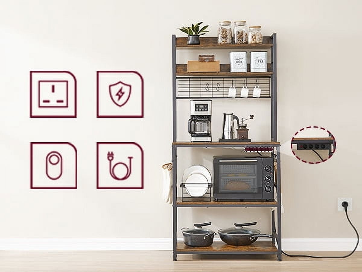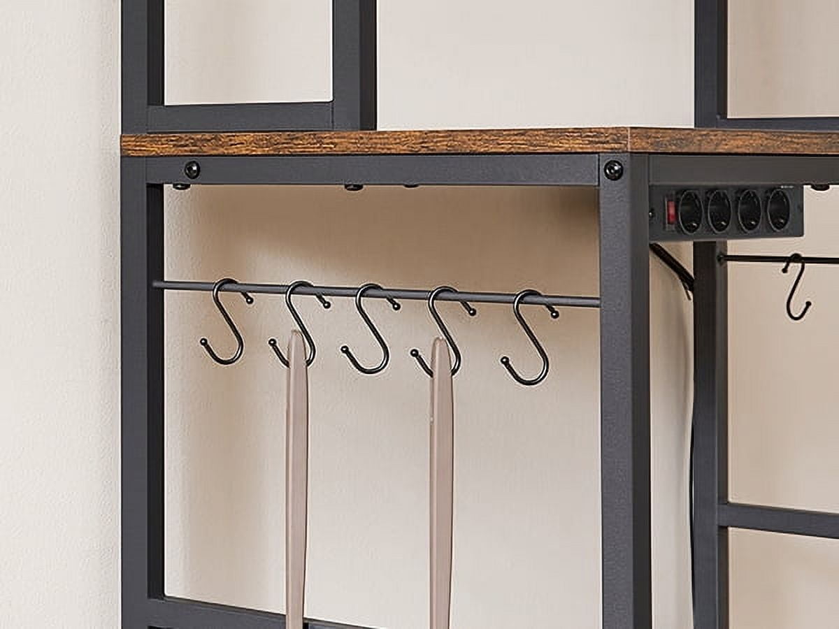 VASAGLE Kitchen Bakers Rack Storage Shelf with Power Outlet 66.59′ H Rustic Brown & Black