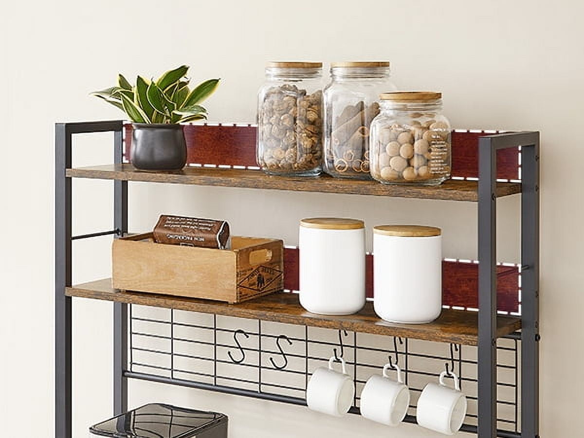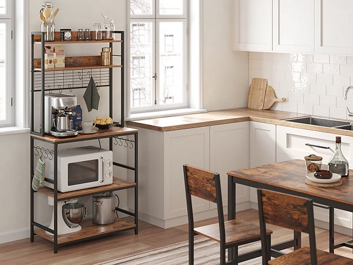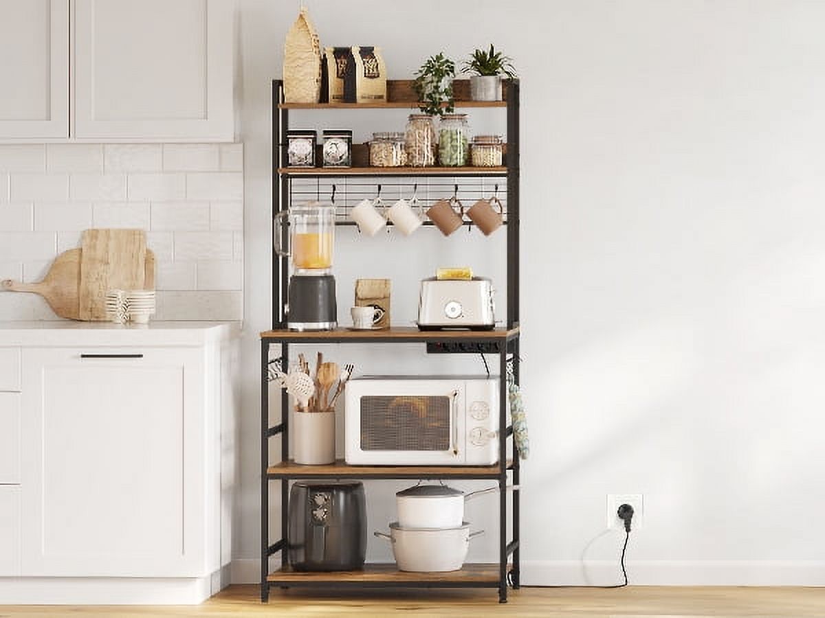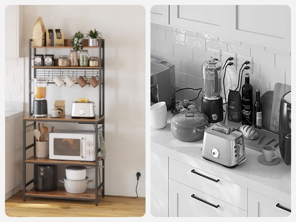 VASAGLE Kitchen Bakers Rack Storage Shelf with Power Outlet 66.59′ H Rustic Brown & Black
