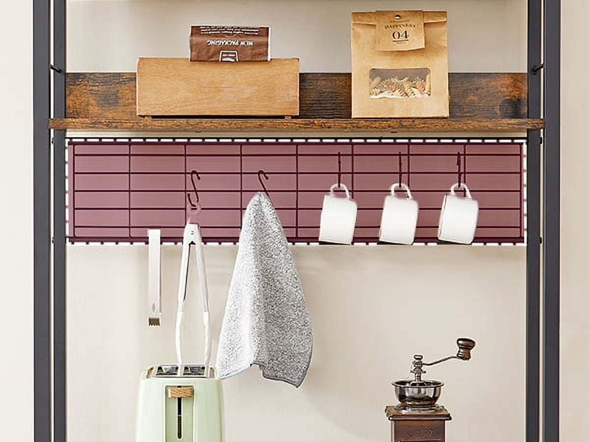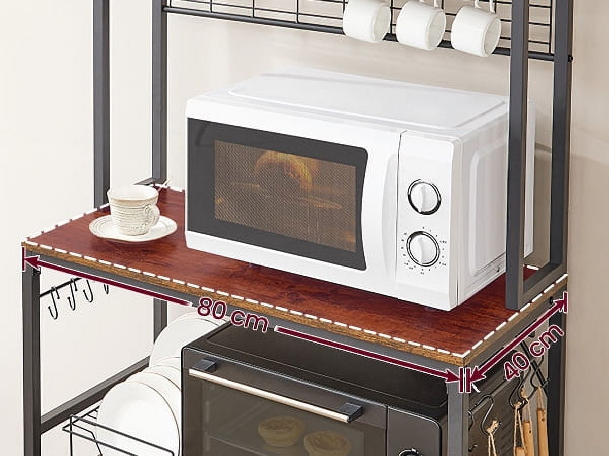 This microwave stand is an for the eat-in kitchen. It is ideal for holding microwave,Coffee machine, oven, and some of your other kitchenware,as well as storing spice, plate dishes,spoon or bits and pieces. Whether placed in the kitchen, living room or study, it will easily stand out for function and style. Loading Capacity: 604 lb Industrial and casually style, industrial color make this kitchen table well match your other furniture for your kitchen, dining room,living room,bathroom,live your dream kitchen in the most possible way. Features: 14 Hooks Shelf Type: Metal Size: 15.69 x 31.49 x 66.89 Inches Number of Shelves: 5 Item Weight: 46.39 pounds