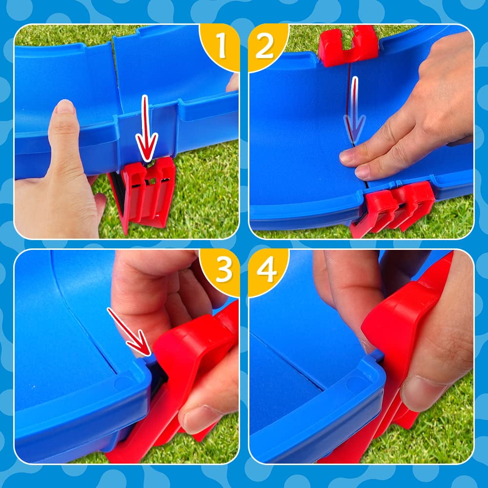 Unleash your child’s imagination with the VATOS Water Play Set, a 39-piece DIY water park playset that lets them create their own waterways and explore the dynamics of water. Featuring a paddle wheel, tower crane, and boats, this versatile water table toy is perfect for indoor and outdoor play, from the backyard to the beach. Crafted with durable, BPA-free materials, this safe and engaging water activity set is an ideal gift for kids aged 3-7, fostering hours of summer fun and learning. How to assemble the water table toy? Step 1: Tear off the black waterproof strip one by one and stick it on the red link accessory, making sure to stick it neatly. Step 2: Place the blue waterway accessories and red link accessories according to the picture to avoid assembly errors. Step 3: Use both hands to align both ends of the blue accessory, keeping the middle part aligned with the middle part of the red link accessory, and then press them down together; Detailed step to set up: 1. Keep 1 line up and down: Bring the two ends of the blue waterway together, keeping the middle line and the middle line of the red accessory on one line; 2. Press in with force: Press down hard together;3. Press the blue accessory: Press the blue water channel accessory firmly into the red link accessory, and it can just get stuck;4. Finish: Follow this step for other links;Install other: accessories.tree,ship,locks, etc; Specifications: Product Size: 20 x 30 x 11 inches Package Size: 15.1″*5.1″*13.2″ Item Weight: 3.5 pounds Manufacturer recommended age: 36 months – 7 years Package Include: Instruction manual Waterway building blocks Boats