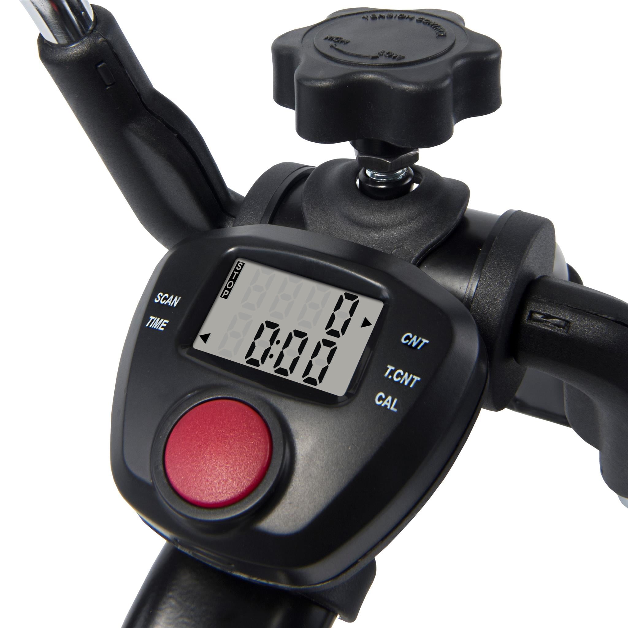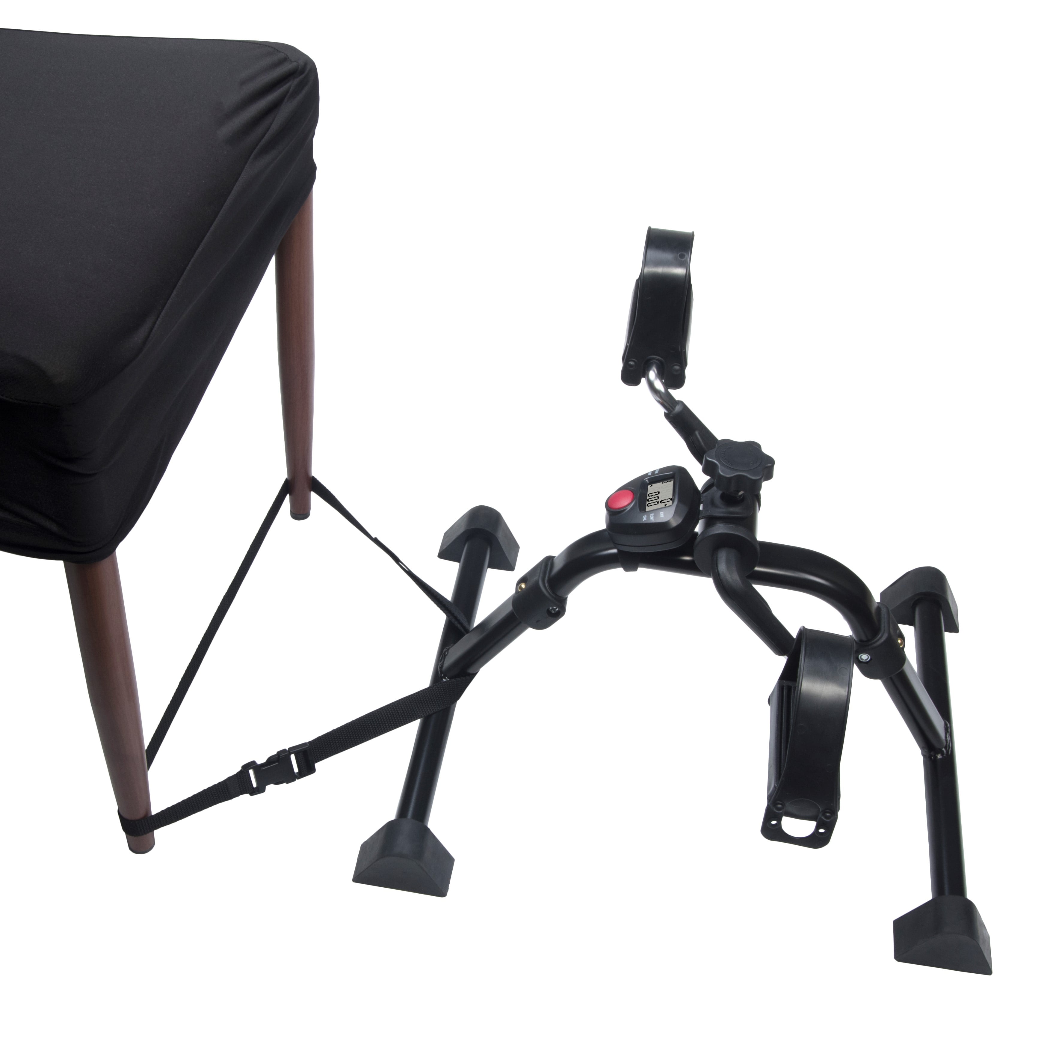 Designed conventionally for Physical Therapy home exercise, the Medical Electronic Exercise Peddler is now more than a physio-equipment. It is Exercise Made Easy! Just sit on your favorite chair, switch on your favorite TV program and start peddling. If you have to sit in the office the entire day, placing your peddler under your desk is a great way to get your blood circulated and your muscles toned, all while getting that deadline met. You may also use it as an arm exerciser to tone your arm. Our peddler now comes with a multi-functional LCD display that allows you to monitor the number of cycle counts and calories burned. In addition, our Quick-Release Folding Mechanism allows you to instantly fold your peddler into a compact, portable unit so you can readily move it between rooms or bring it on the go. Exercise can now be accomplished anywhere together with your favorite activity i.e. reading a book, feeding your baby or watching a movie. Yes, exercise can be this simple. The adjustable tension knob also allows you to control the level of resistance and workout intensity desired. Our exercise peddler also features non-skid ribbed rubber feet that provides you with the additional traction and stability required during peddling. The Medical Electronic Exercise Peddler, Exercise Made Easy. IMPORTANT: This product is NOT designed for rigorous use. It is for gentle low impact exercise.