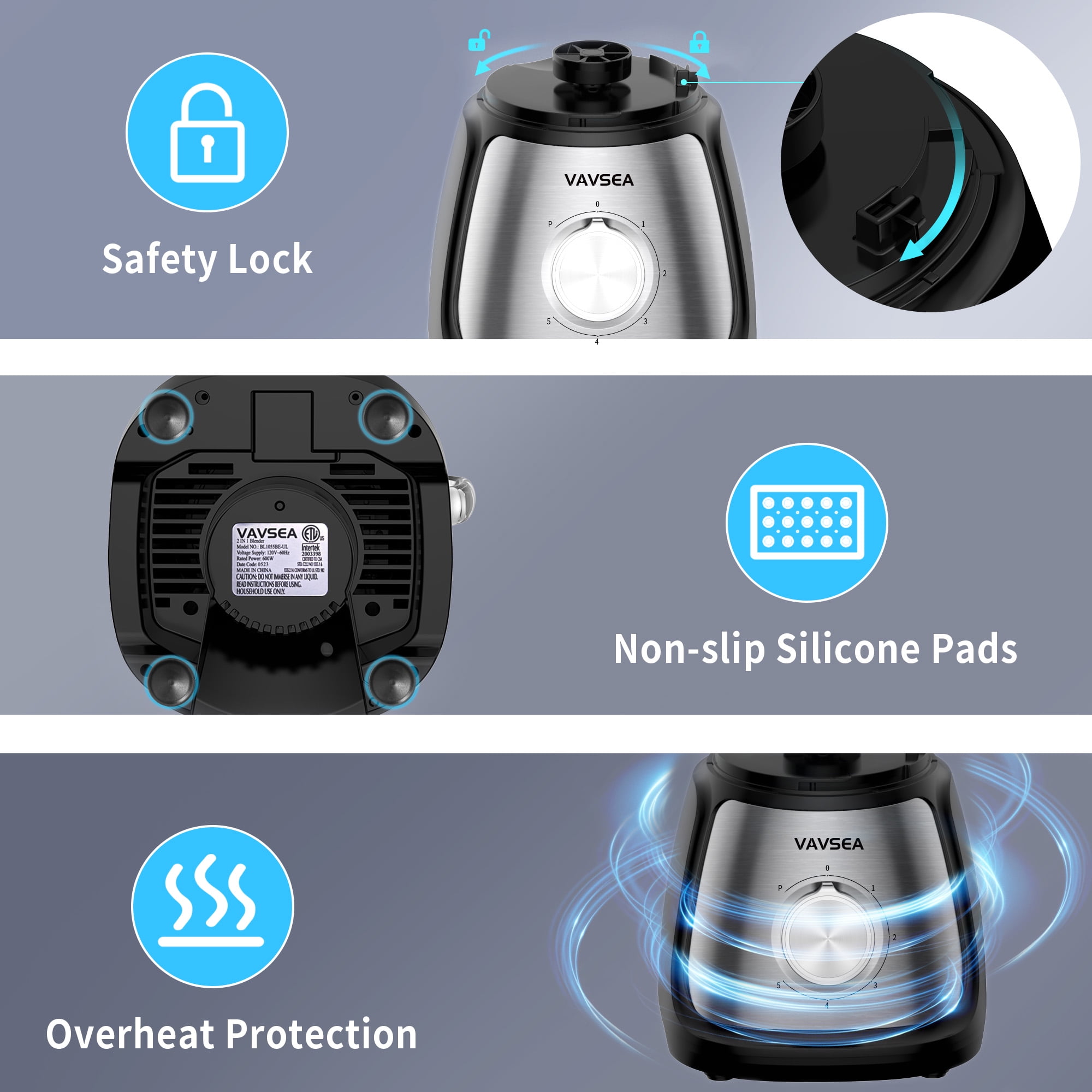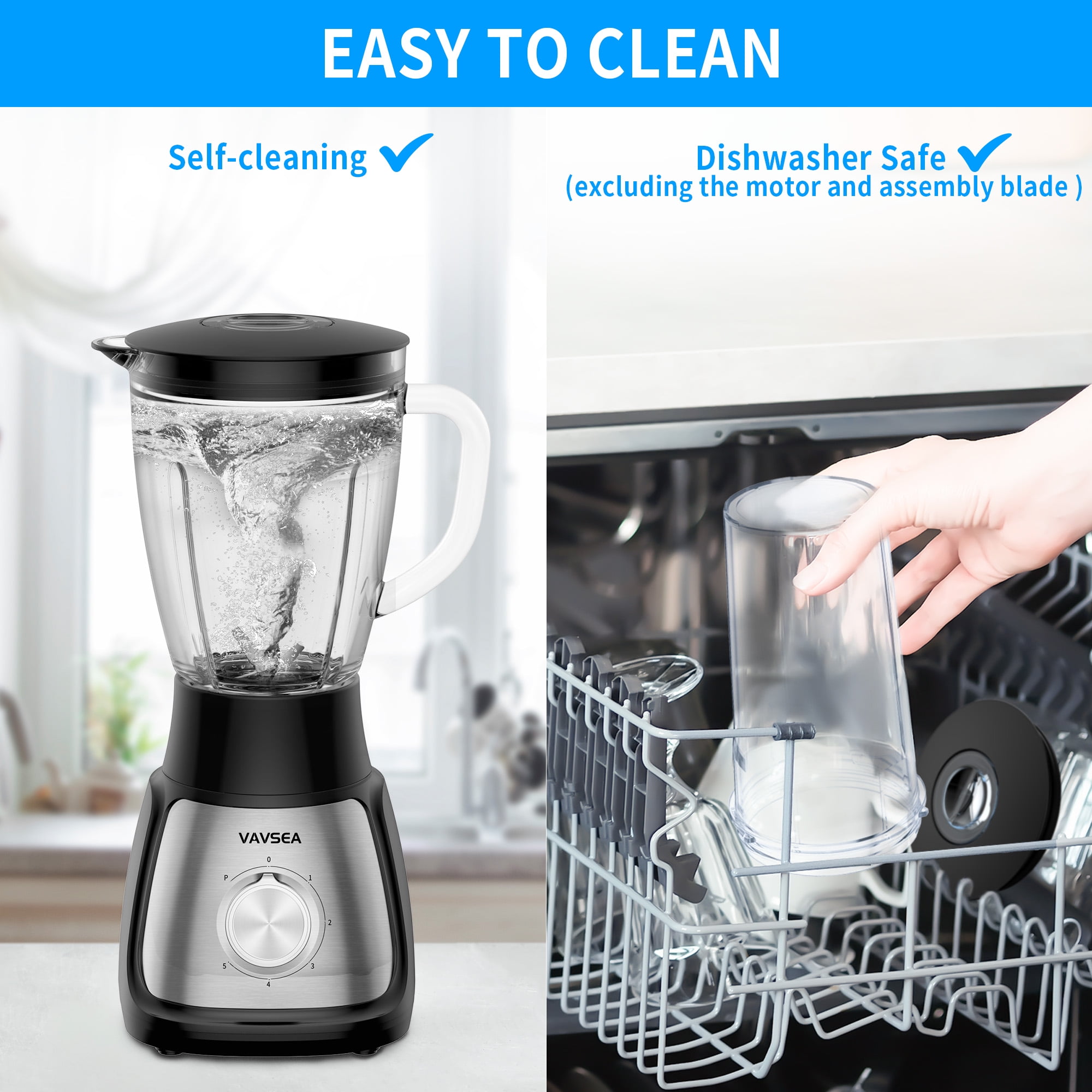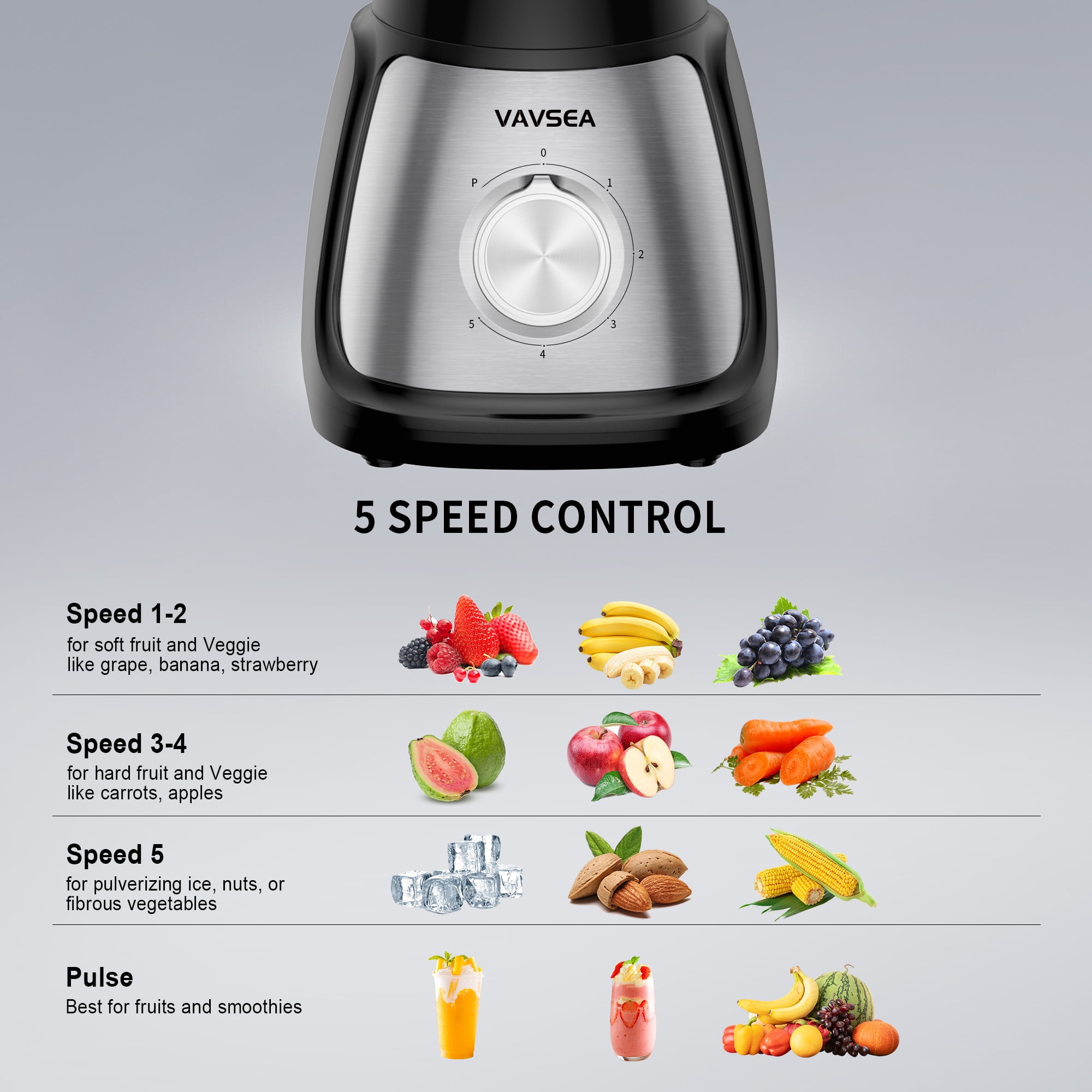VAVSEA 1000W Countertop Blender for Shake and Smoothies, Kitchen Blender with 51oz Jar & Travel Cup, for Ice Crush Fruit Protein Drinks Vegetable, 5 Speed, Silver