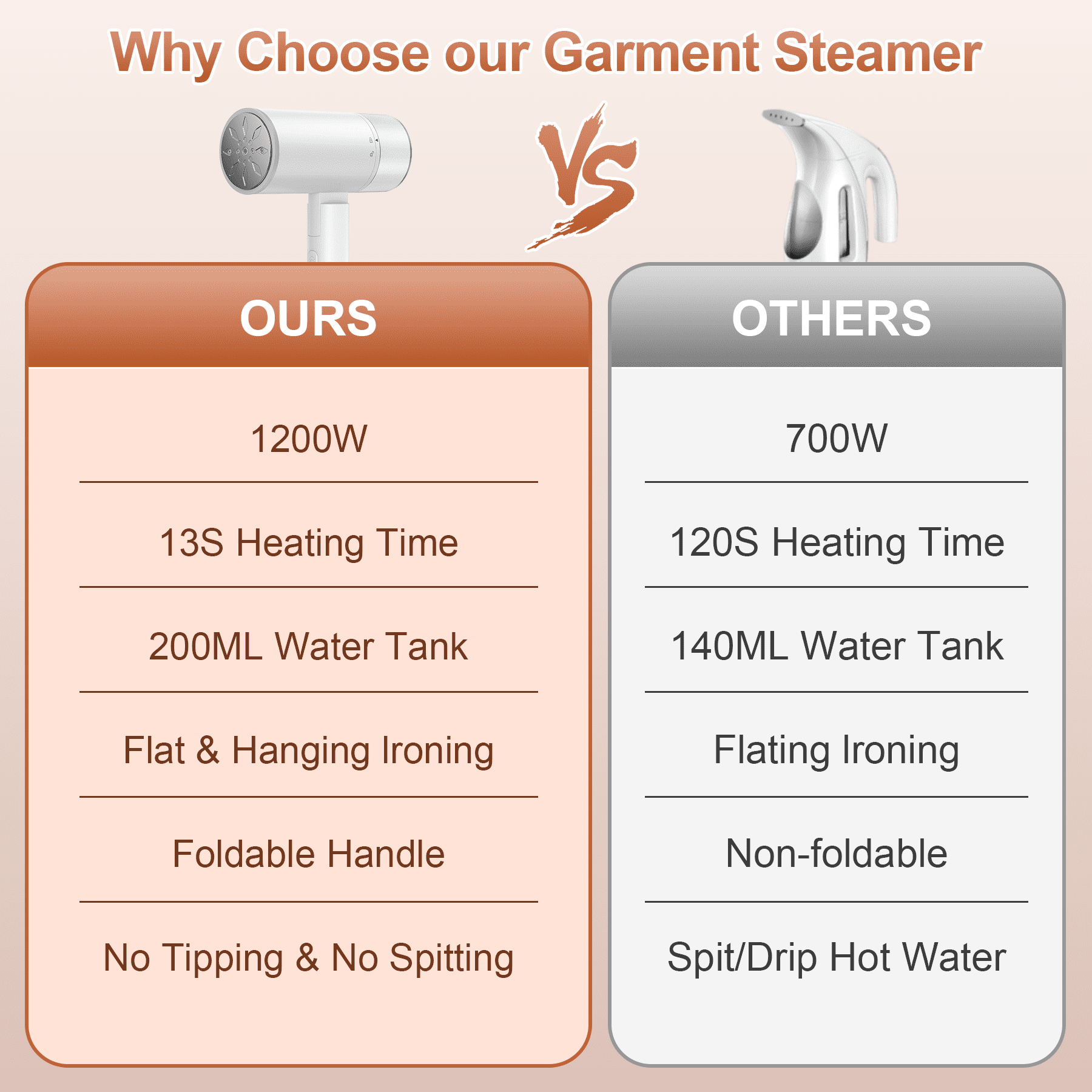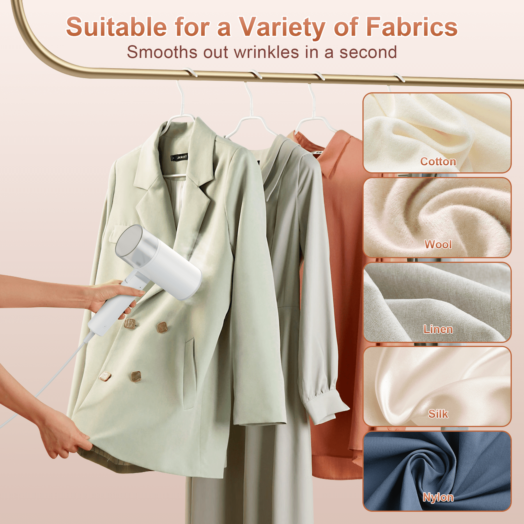 1200W Powerful Steam – Designed for efficiency, this upgraded steamer for clothes features one-button operation and continuous steaming for up to 15 minutes. Its penetrating steam effortlessly softens fabric fibers, making wrinkles disappear in seconds. 13s Effortless Wrinkle Removal – A powerful heating system ensures deep and even steam penetration, eliminating stubborn creases with ease. No complex settings, whether you’re refreshing a blouse before heading out or prepping a crisp shirt for an important meeting. Widely Used in All Fabrics – This portable fabric steamer is ideal for ironing all kinds of clothes. It is suitable for all fabrics and is widely used in T-shirts, shirts, coats, wool, denim, curtains, furniture, toys, silk, lace, etc. Leak-Proof Technology – Equipped with advanced leak-proof technology, this handheld clothes steamer allows for both vertical and horizontal steaming without dripping. Easily refresh hanging garments or press clothes flat on an ironing board—no leaks and safe. Foldable & Space-Saving Design – Unlike bulky traditional household clothes steamers, this innovative folding design allows for easy storage, keeping your space organized. Its sleek, ergonomic build ensures a comfortable grip, making steaming effortless and efficient. What You Get – 1* Home garment steamer, 1* Fabric brush attachment, 1* wall mount bracket, 1* user manual, and friendly customer service.