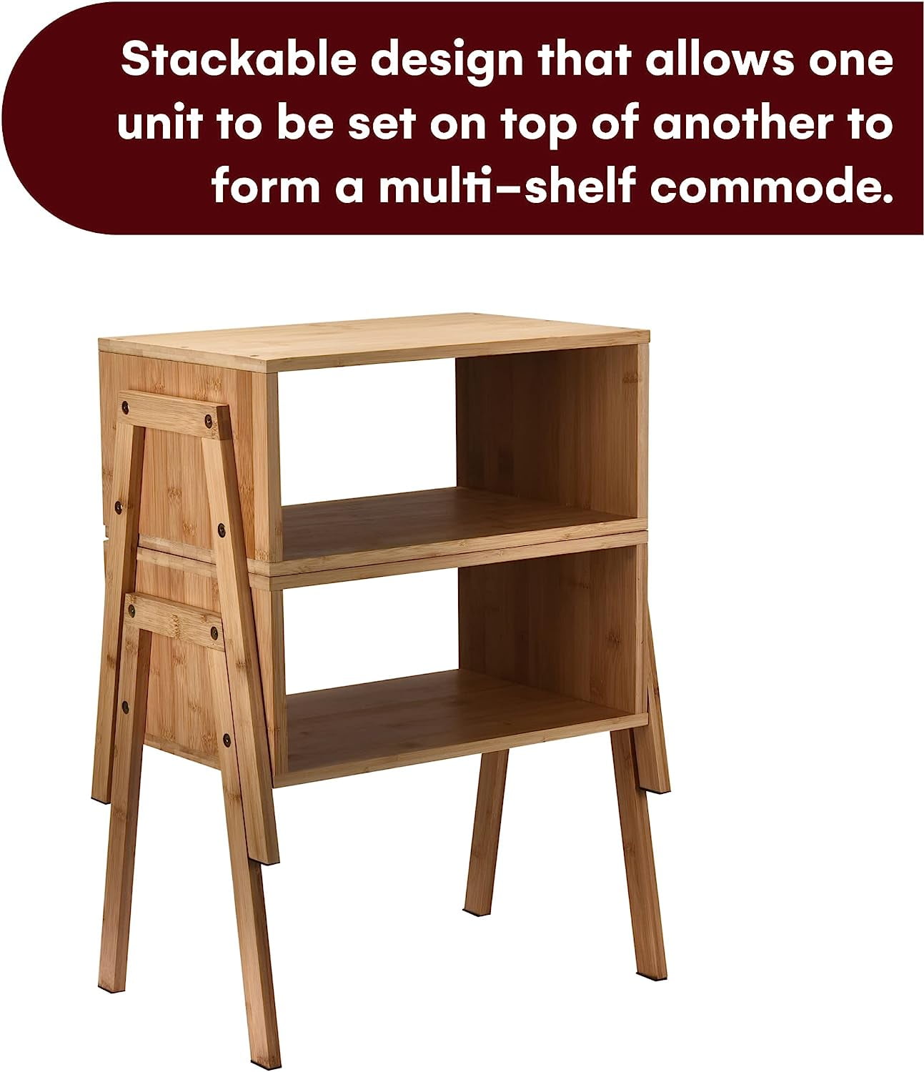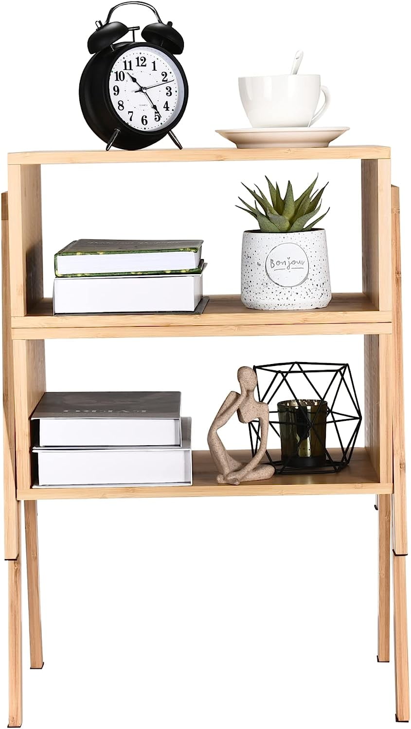 Vdomus Natural Bamboo Nightstand Set – Stackable Bedside Tables with Open Storage – Minimalist Furniture for Bedroom or Living Room Decor