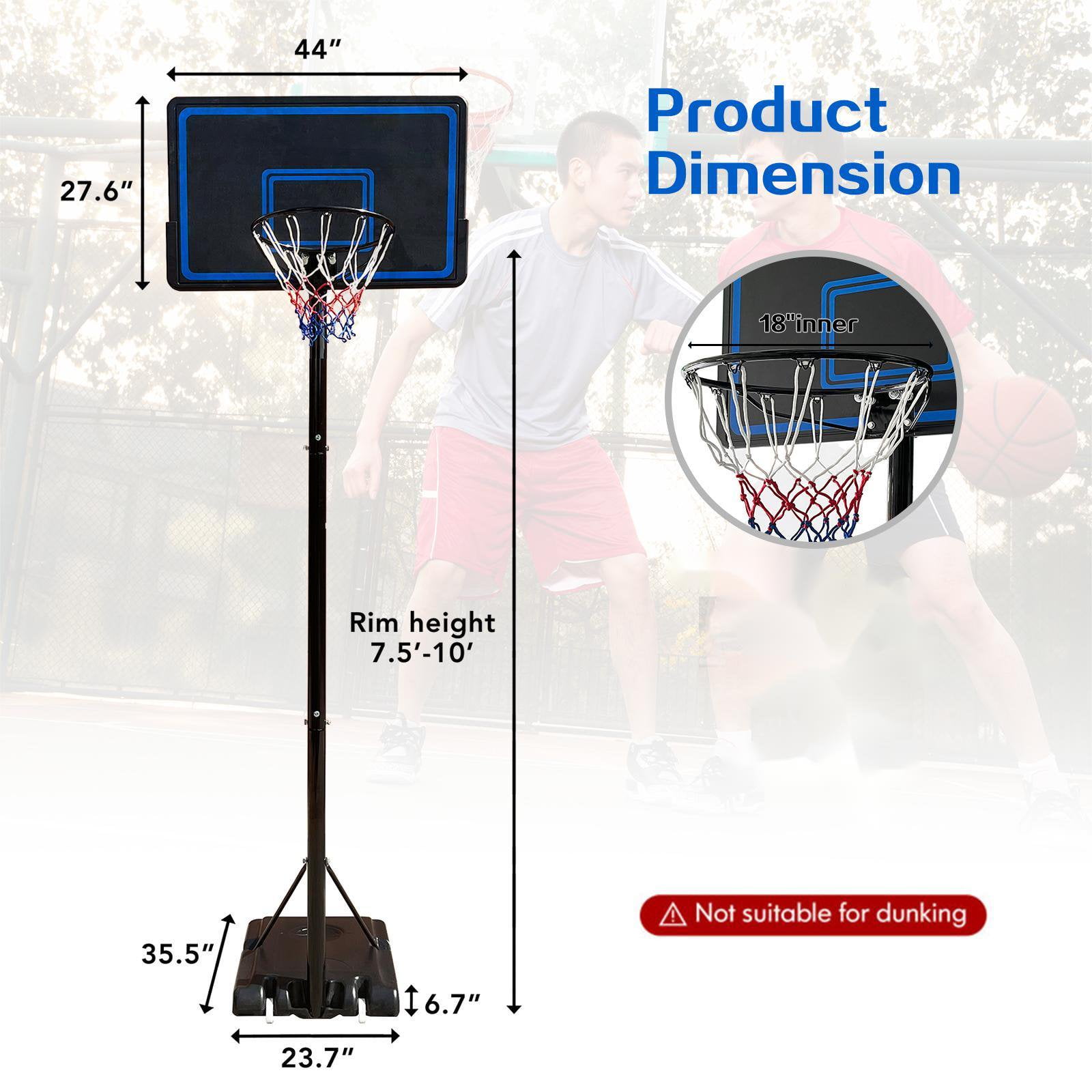Vebreda 44″ Adjustable Portable Basketball Hoop with 7.5 – 10 ft. Height Adjustable for Outdoor Indoor Court, Blue