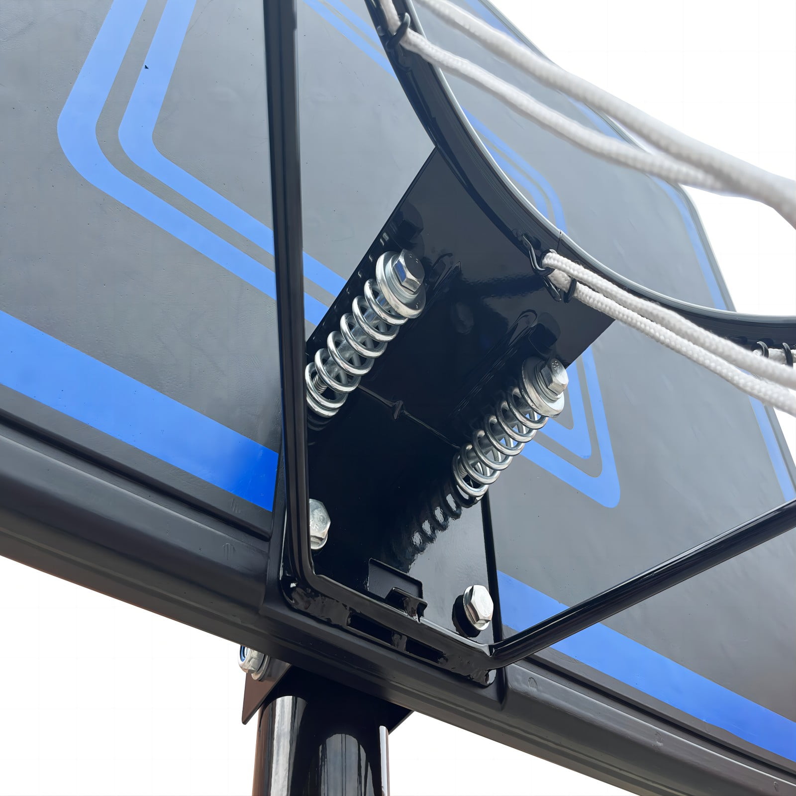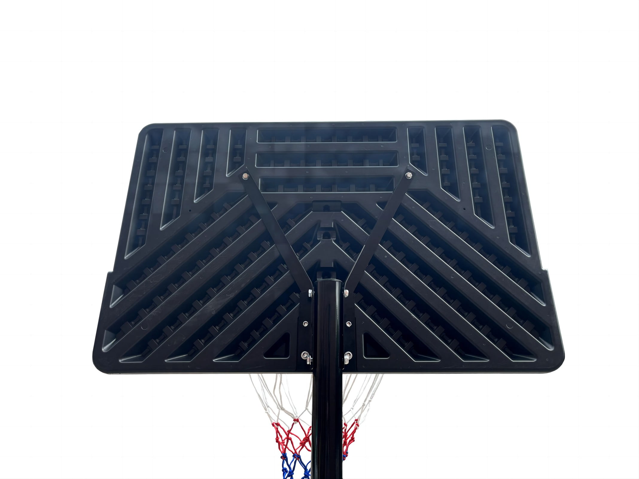 The 44 in. Impact backboard is molded of high-density polyethylene Graphics on this adjustable basketball hoop are screen-printed with UV-protected inks for superior color and protection against the elements Backboard Size: 44″ The stability base fills with 20 gallons of water or sand N.W.: 19 kg / 41.9 lb G.W.: 21 kg / 46.3 lb Two wheels Designed for outdoor residential play Packaging Dimensions: 43.7″ x 28.8″ x 7.5″ All parts for assembly included