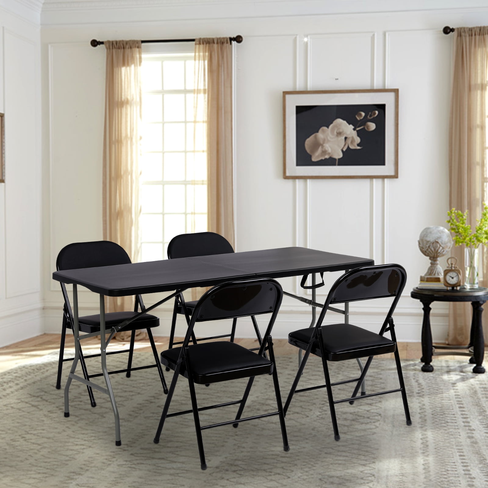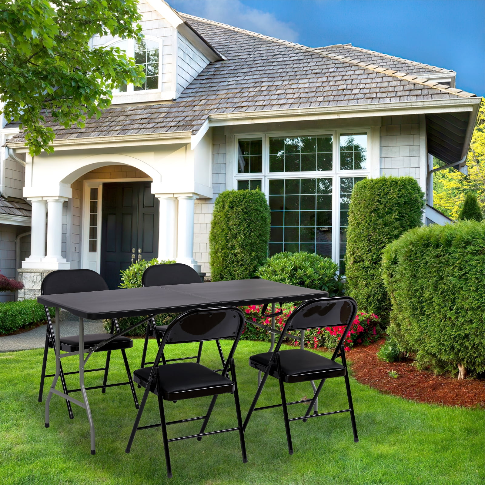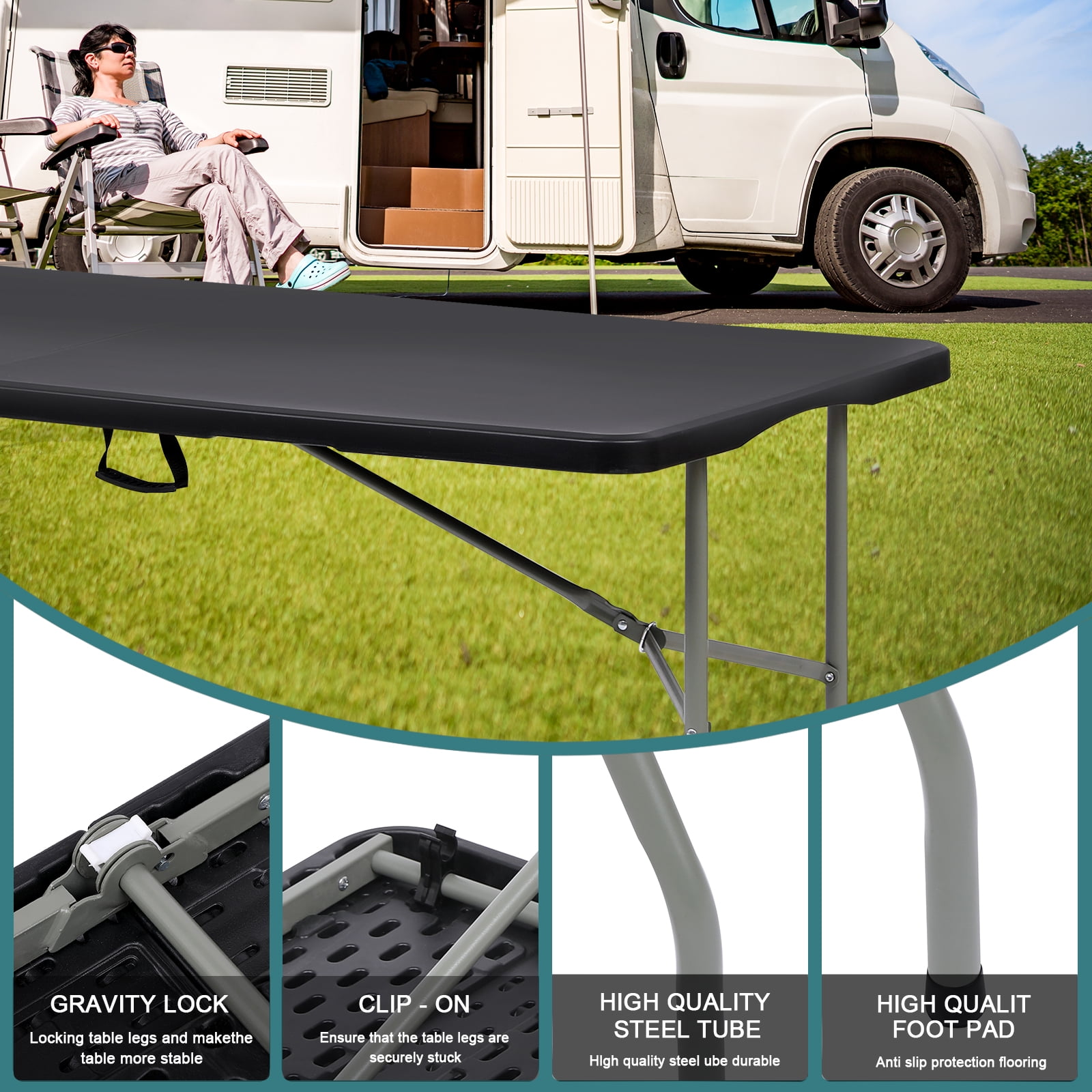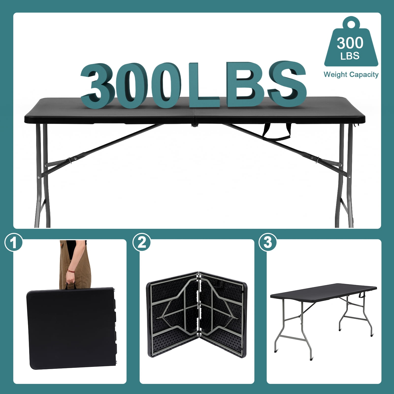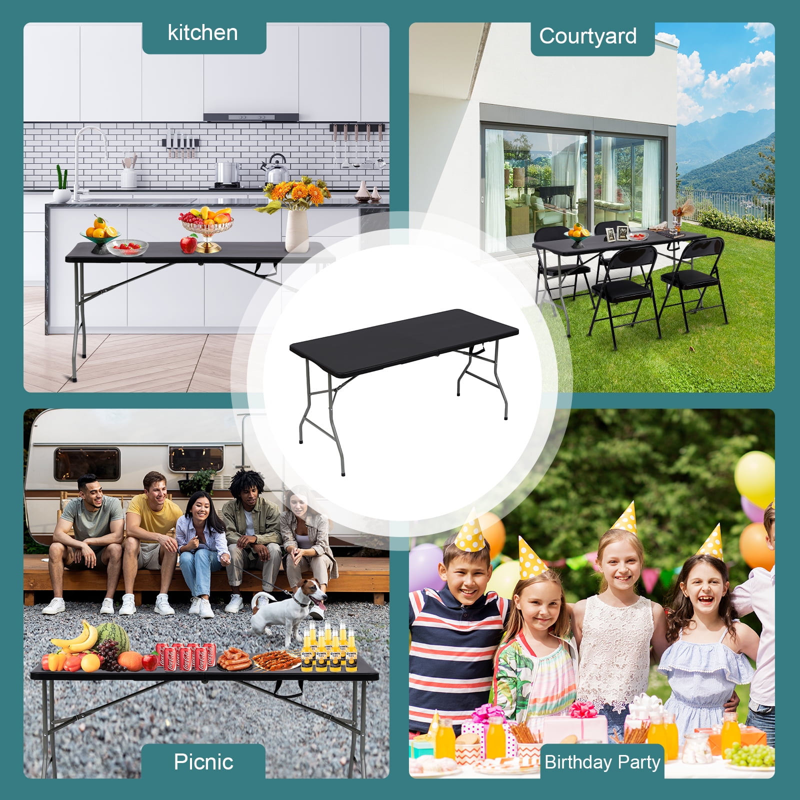 Vebreda 5 ft Folding Table Fold-in-Half Plastic Table for Indoor/Outdoor Use Black