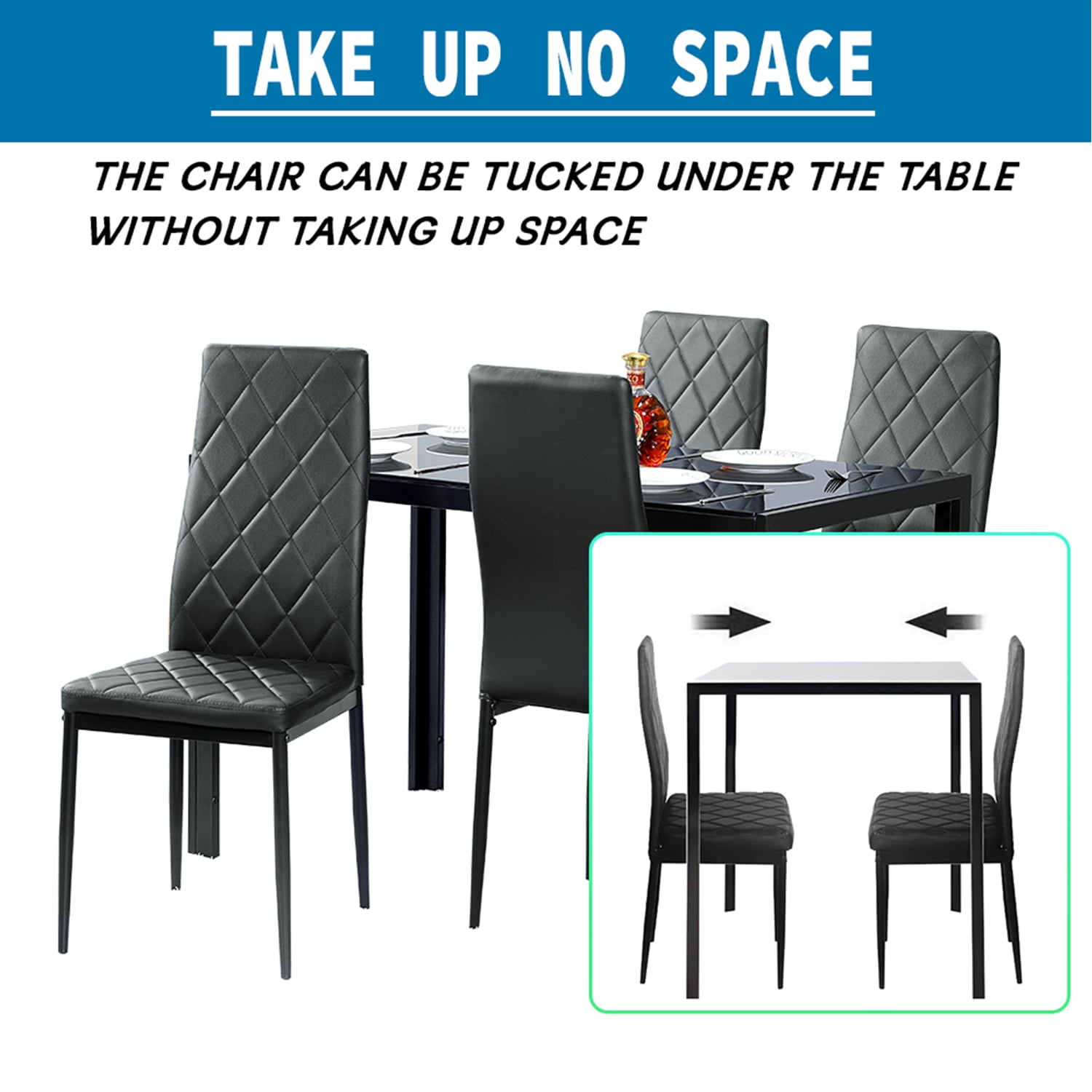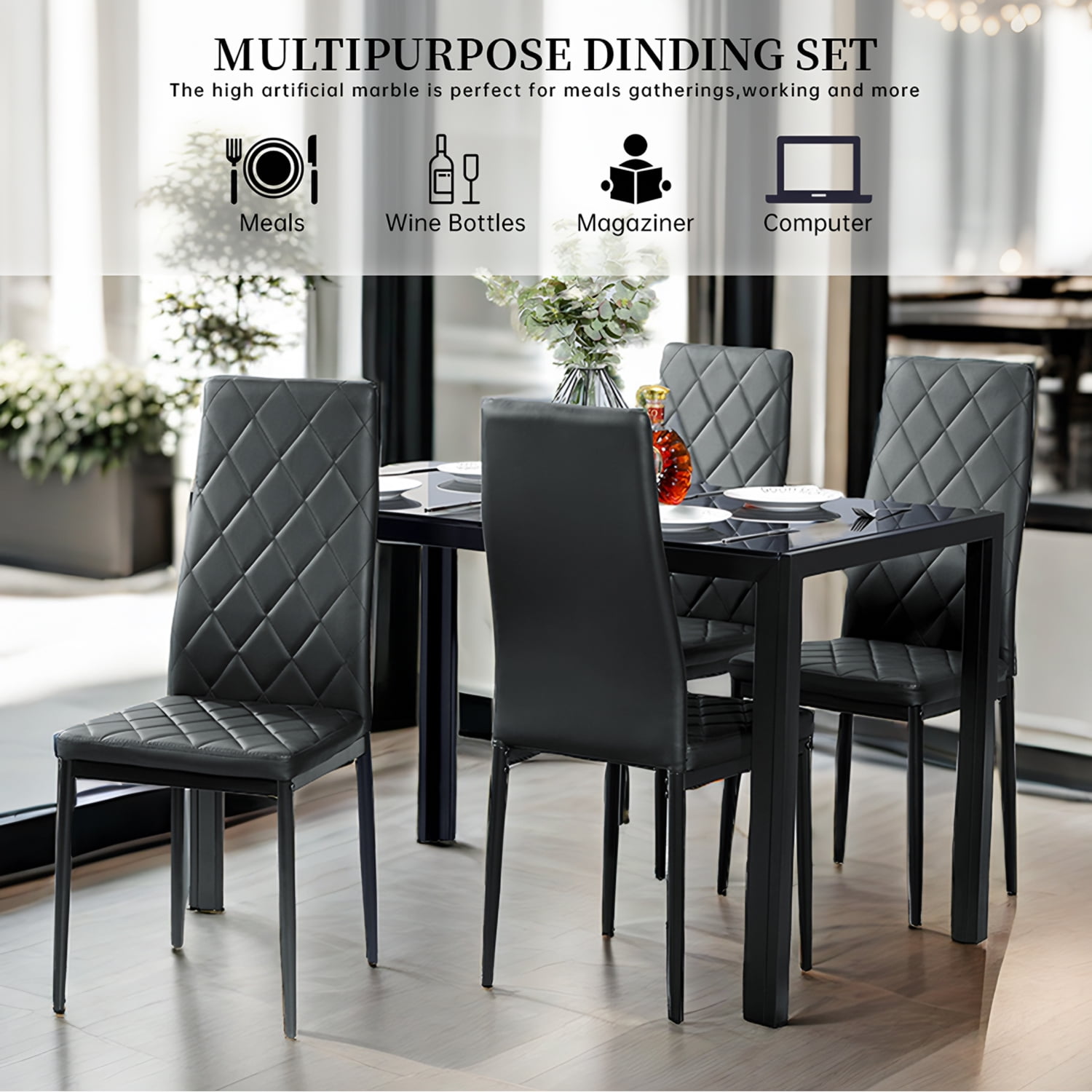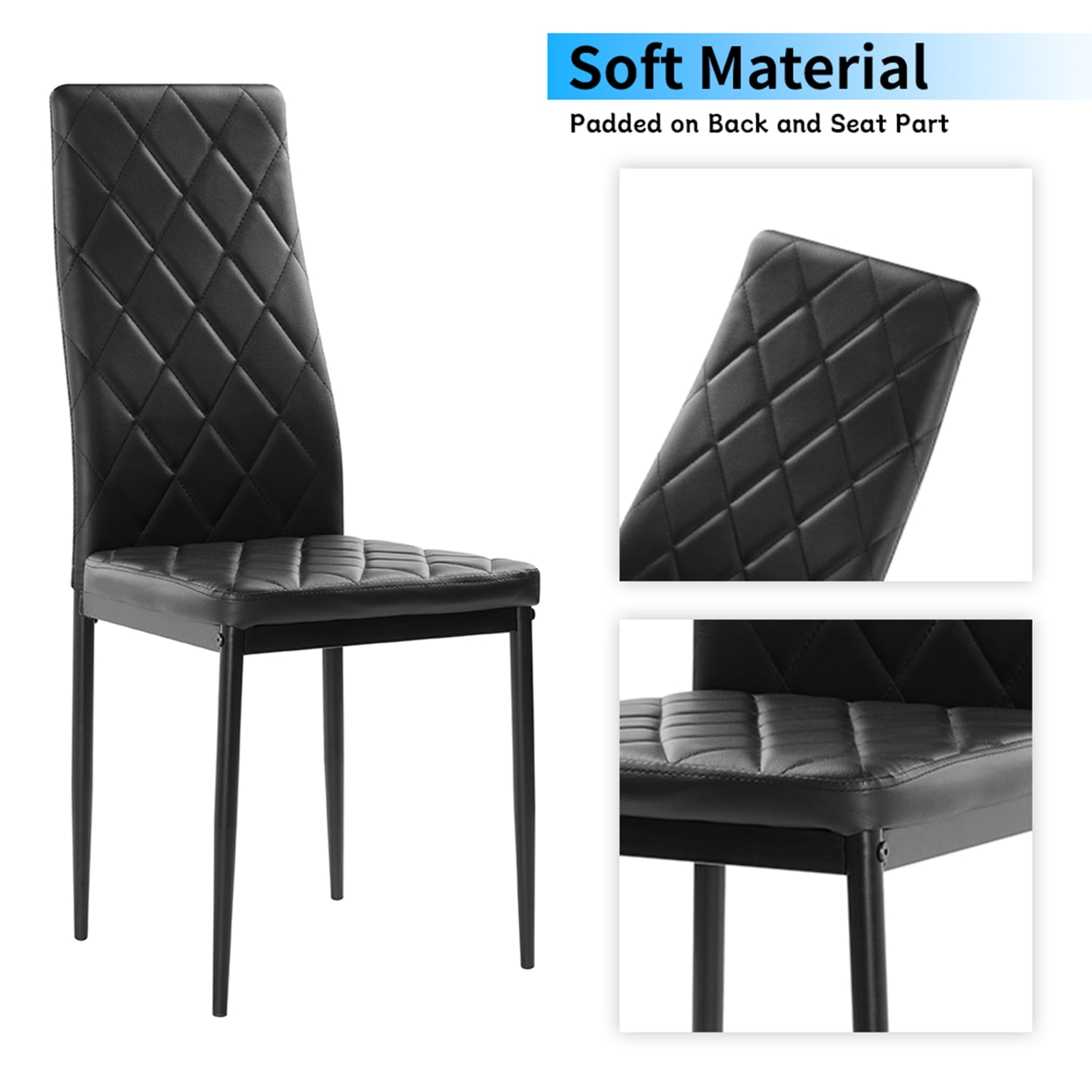 ♥● Sucking Disc to Fix the Glass Table Top: Sucking disc on the table to fix the glass tabletop, which could make the tabletop would not move after it is settled. This dining set combines quality and style into one and serves, rust-resistant is the idea of simplicity and contemporary living. ♥● Padded PVC Leather: The dining chairs have padded PVC leather on the seat and back part. Soft cushions and backrests make these chairs could let you have an enjoyable sit feeling. ♥● Suitable for Daily Use: Modern and elegant style is ideal for diverse rooms. The high-quality iron wire connecting procedure which could make this dining set more durable and solid. The mature process makes this item looks more delicate and beautiful. And we would try our best to give you a satisfying shopping experience, if there is quality, we would make the best solution to solve the problem.