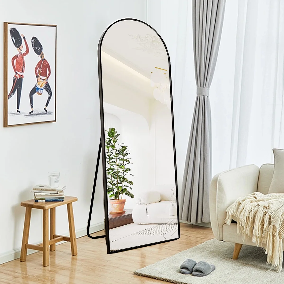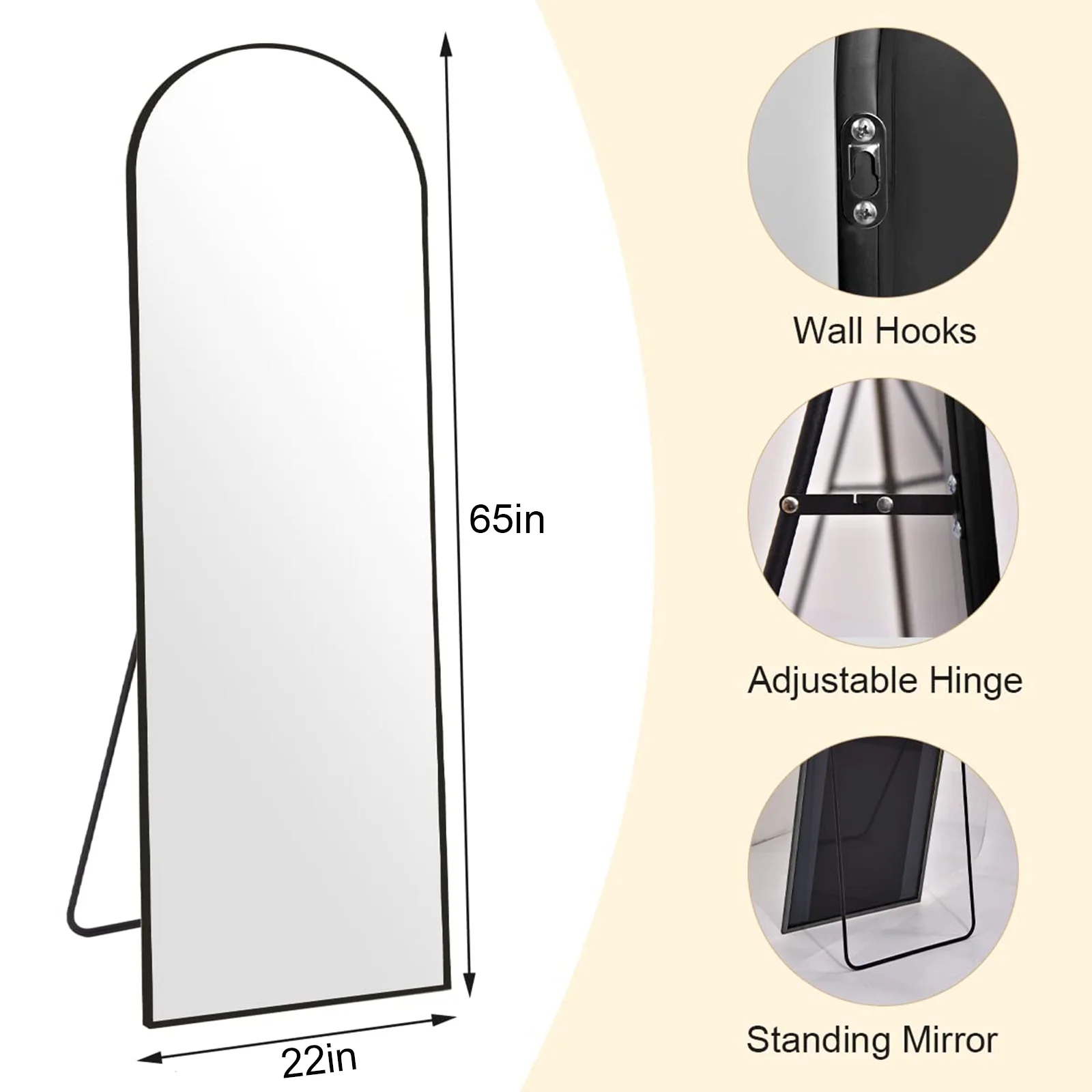 Modern Elegance: Elevate with arched floor mirror. Versatile Display: Tilt, hang, or freestand. Distinctive Design: Arched frame, classic touch. Size Matters: 65×22 for full-figure reflection. Effortless Install: Lean or hang effortlessly. Style Reflection: Mirror your personality. Ambiance Upgrade: Modern elegance, easy setup.