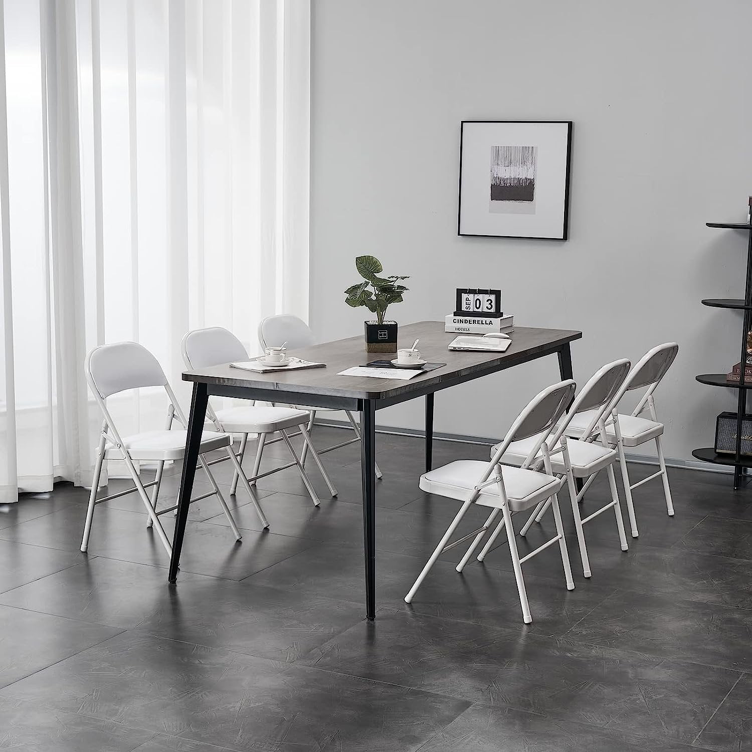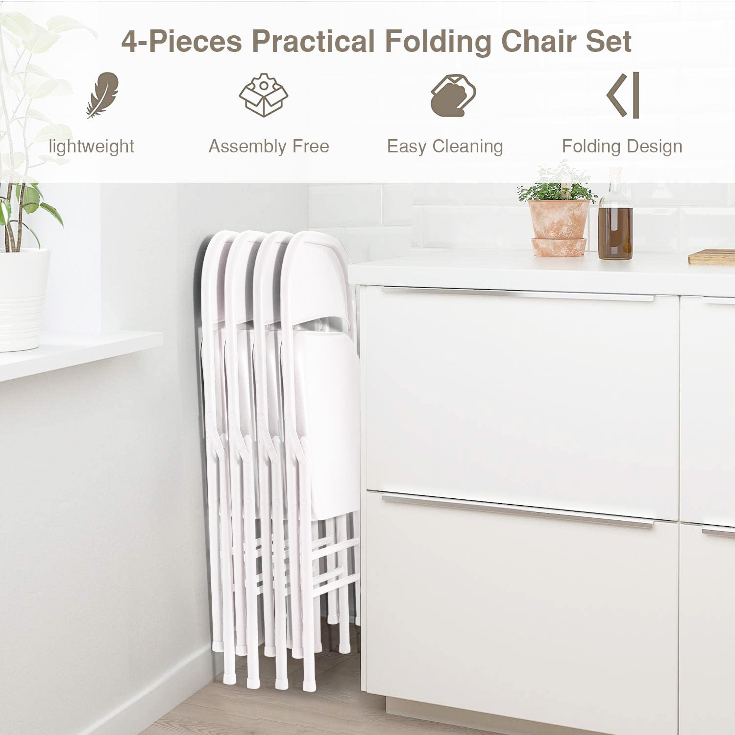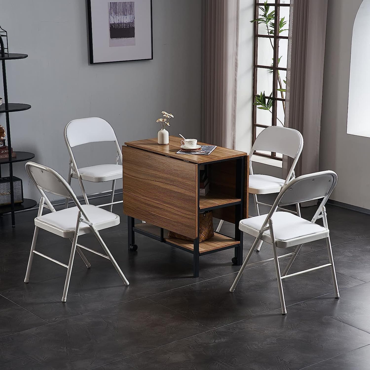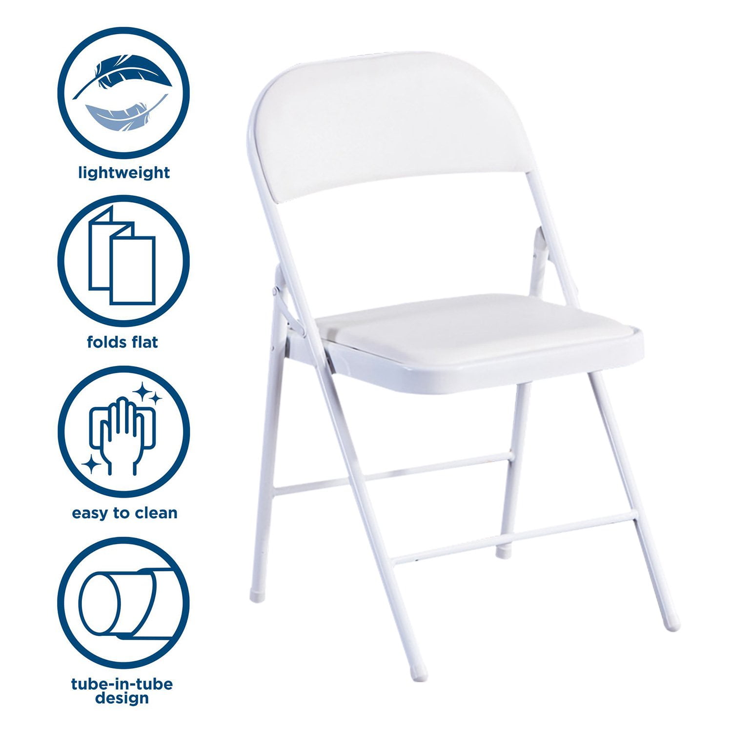 Vebreda Folding Chair Vinyl Padded Seat Metal Frame Home Office, White, 4 pack