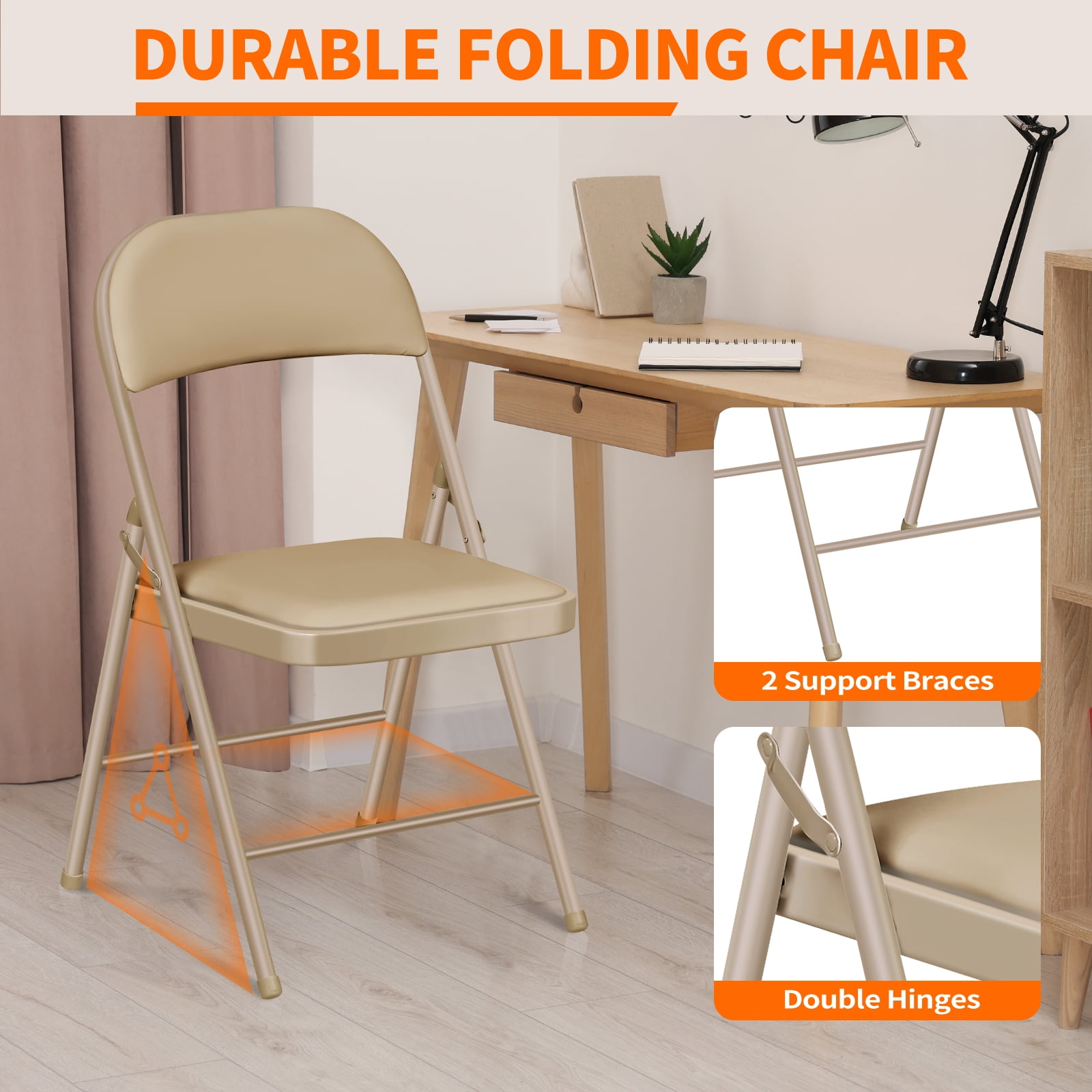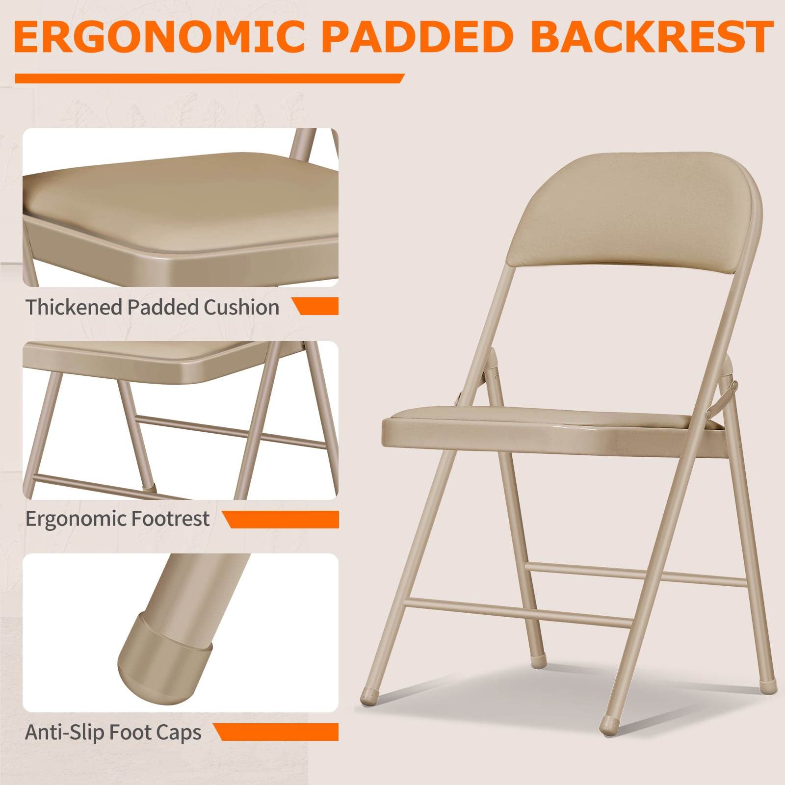 Vebreda Padded Metal Folding Chair, 4-Pack, Kahki