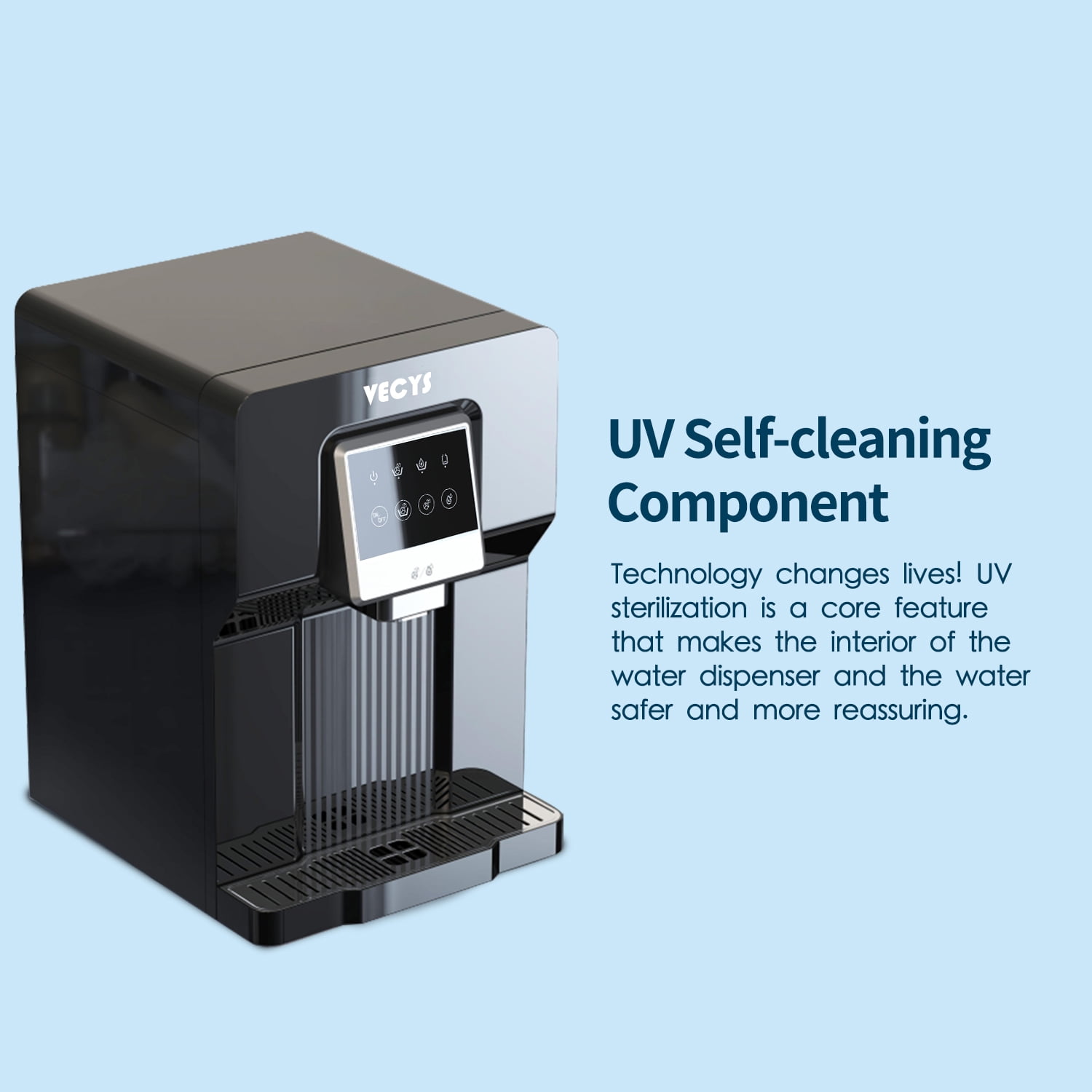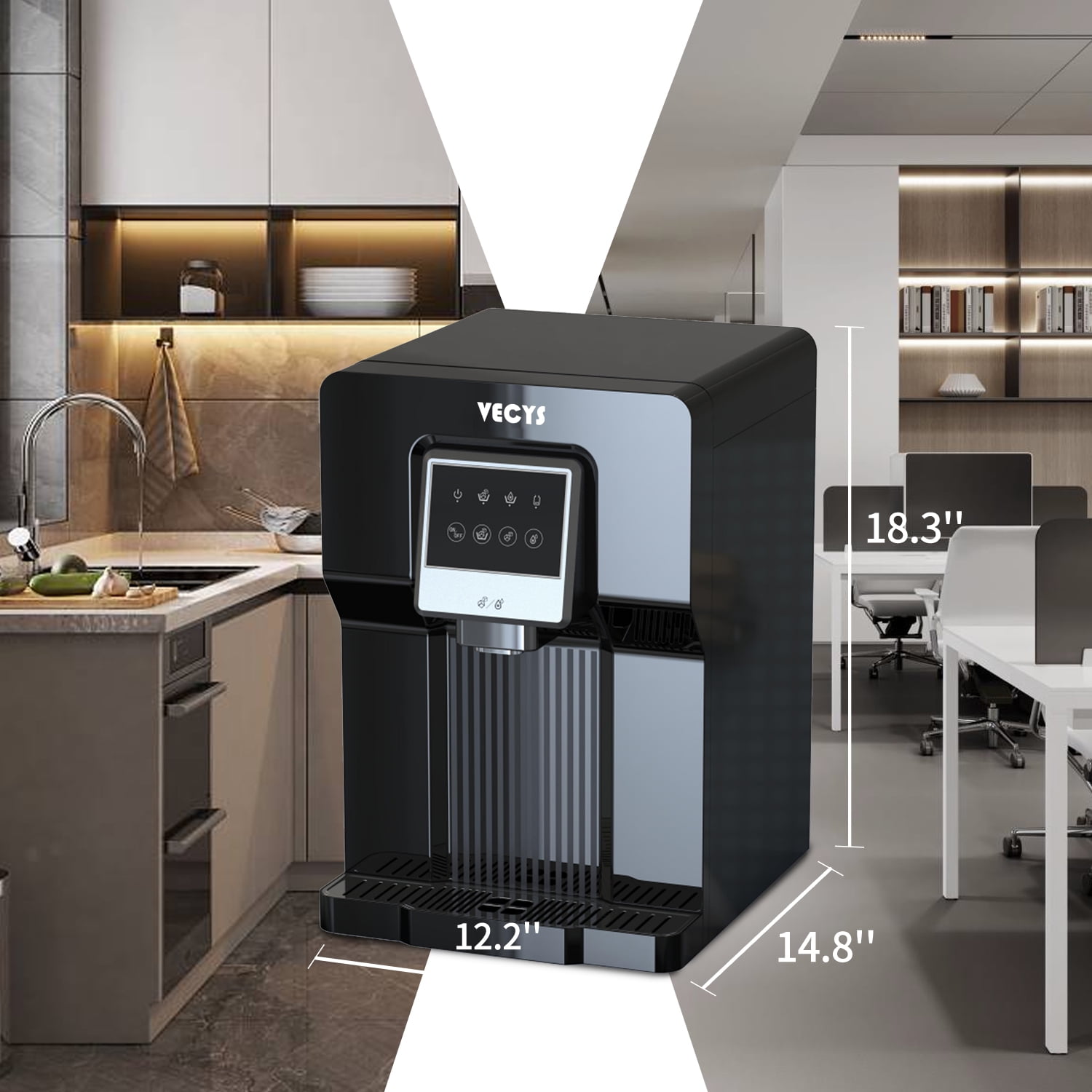 Countertop 2 In1 Water Cooler: The VECYS countertop water cooler is designed for kitchens, living rooms, RVs, and more, combining cold water dispensing and icemaking in one compact unit Ice Making Capacity: Produces up to 18 lbs (8 kg) of ice daily, with a production time of about 8 minutes for a standard glass at an ambient temperature of 77℉. Note: Cold water and icemaking cannot occur simultaneously About Usage: Requires connection to an external water source. For optimal performance, it is recommended to use a preinstalled filtration system. Includes adapters and water pipe for easy installation Efficient and EnergySaving: Features a highperformance compressor for greater efficiency and stability, ensuring outstanding product performance Reliable AfterSales Support: Signaturerequired delivery to ensure safe receipt. Customer satisfaction is a priority, and support is available for any issues upon product receipt