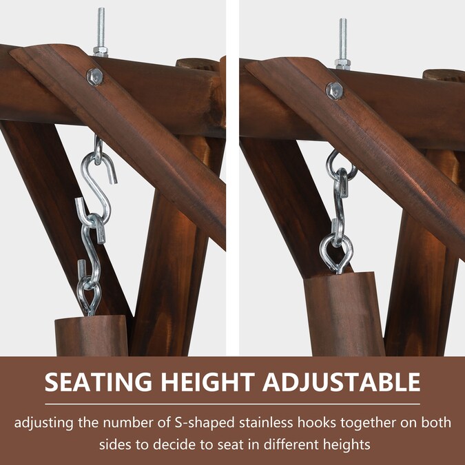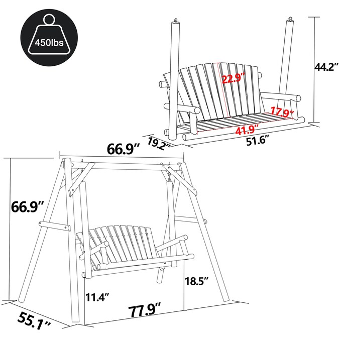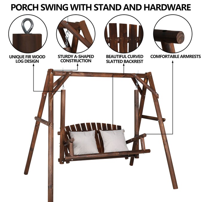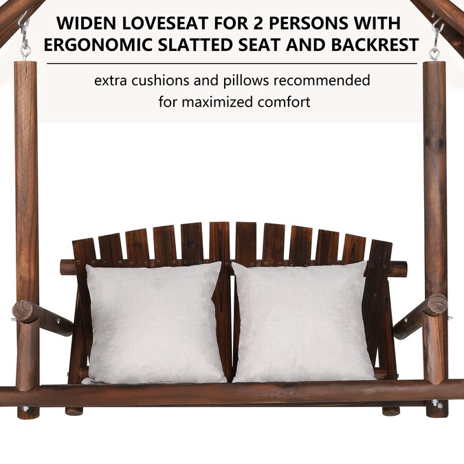 With stylish natural looking, this wooden outdoor porch swing would definitely add elegant modern feelings to your patio, deck, garden or backyard. The back as well as the seat of this wood outdoor swing is designed in curved slatted style for maximum comfort concerns. You can add extra cushions or pillows to it based on your own personal needs. This wooden porch swing is designed to be ergonomic for its seating height when seating on it and gliding smoothly forwards and backwards. The wider and deeper seat for two person also ensures you comfortable seating experience with weight capacity of 450lbs. Armrests on both sides are equipped at the same time.
