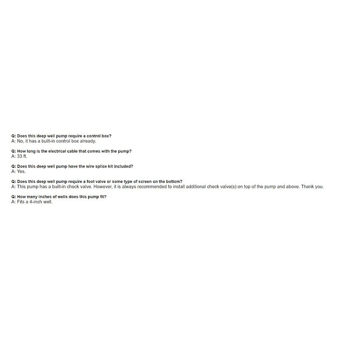- Trouble-free Check Valve AND Filter: This well pump has a built-in check valve to prevent back-flow (an additional check valve is highly recommended); The stainless steel filtration mesh is designed to filter impurities; You can add a layer of gauze in front of the filtration inlet for a new drilled well that may contain excessive granular sediment; Keep impurities out without the headache