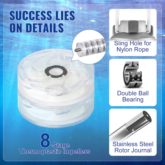 - Upgraded Stainless Steel: The whole frame of our deep well pump is unlike anything on the market; It is made of stainless steel, including the outlet and connecting components; You don’t have to worry about it becoming rusted or corroded after being underwater for a long time; With ETL certification and IP68 waterproof grade, the pump can be used for 8-10 years; Stop wasting time; The perfect choice is in front of you