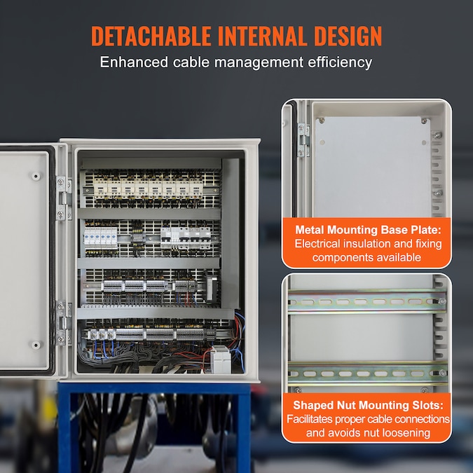 - Convenient Operation: The fiberglass enclosure box is equipped with a detachable galvanized mounting backplate and t-nut mounting slots for easy installation of electrical components; Complete accessories and mounting holes can quickly fix the fiberglass electrical box on the wall