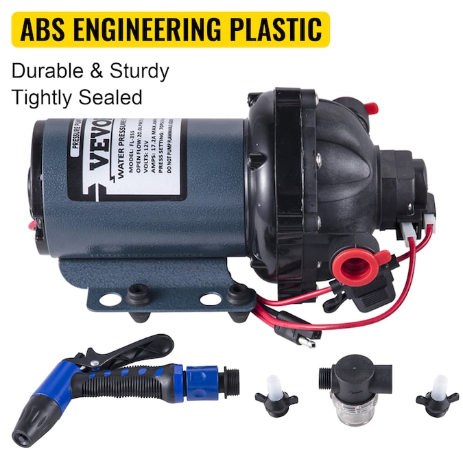 - Superior Performance: The self-priming 12V pump is equipped with an automatic pressure switch control that automatically opens and closes when you open and close the nozzle; It features 20 Liters per minute (5.5 GPM) capacity flow with a high pressure of 70 PSI and has built-in thermal overload protection;