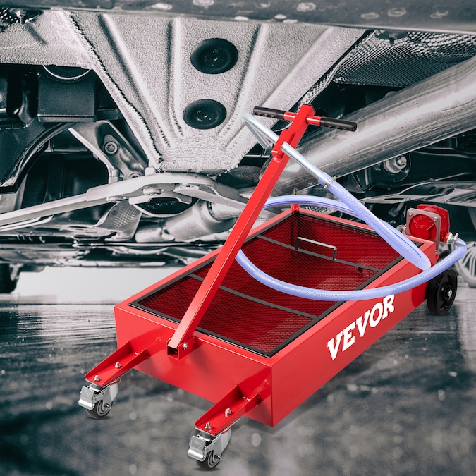 Low Profile Oil Drain Pan: Our drain pan features both rigid casters and locking swivel casters for smooth transport; Anti-splash mesh grille can keep your shop clean and safe; This drain pan is perfect for evacuating used fluid, including motor oil, transmission fluid, and coolant;; [Package Content] 1 x Low Profile Oil Drain Pan; 1 x Oil Drain Pipe
