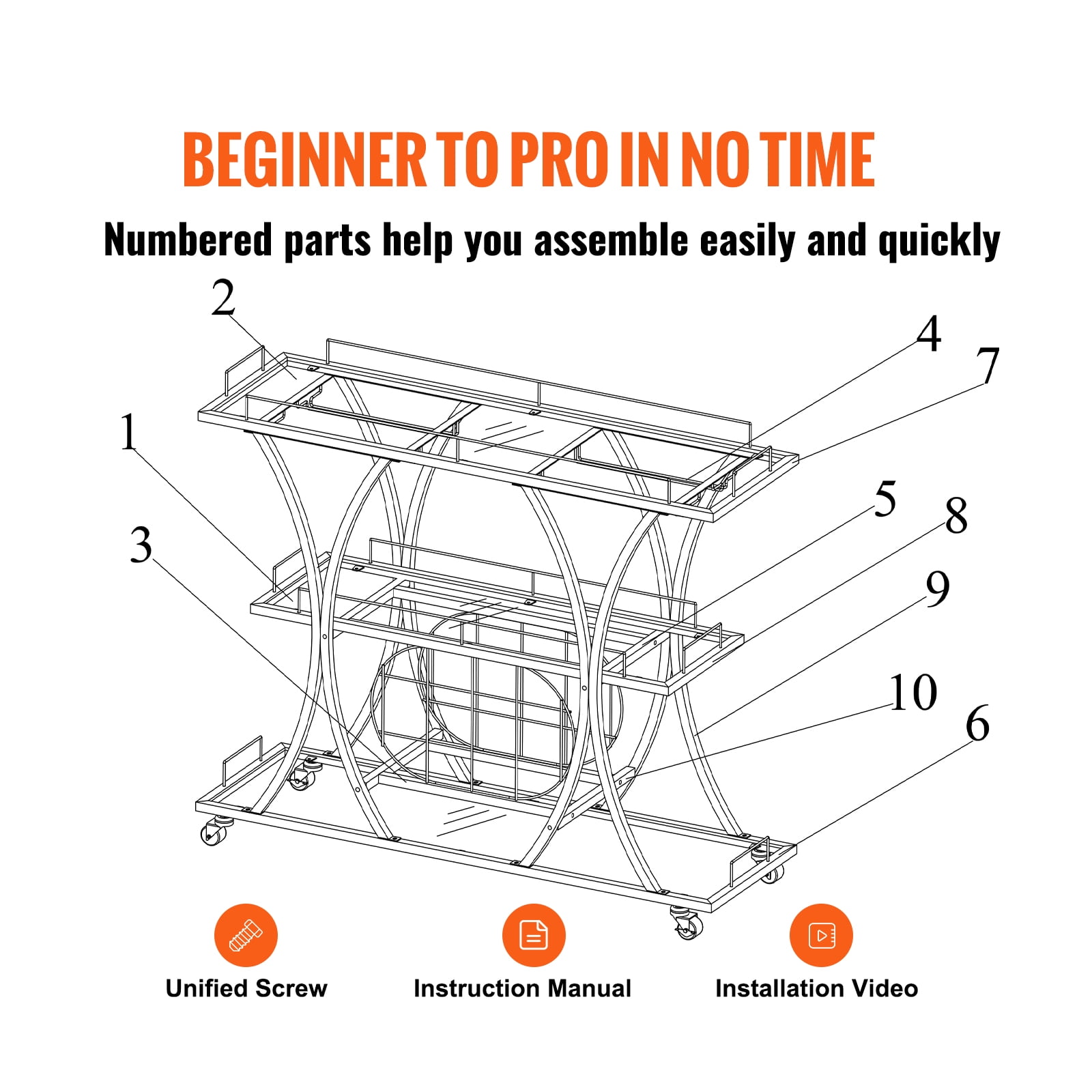 3-Tier Vintage Cart: Our glass bar cart is the perfect combination of a wine holder, tabletop, and glass holder. It can efficiently serve food and save energy. Ideal for kitchens, restaurants, hallways, bars, or outdoor barbecues. Get ready to do more! Take Control of your Space: Measures 43.7×13.8×36.4 inches. This gold wine cart on wheels can fit in various places and hold up to 180 lbs. That is a lot of weight! It has an open storage compartment, a wine rack, and hanging glass storage. Get ready to holds 9 wine bottles and 4 rows of wine glasses for any special occasion. Cheers to you! Movable & Lockable: Stop and move seamlessly! Features four 360° swivel casters and two casters with brakes. The gold bar cart can be freely moved throughout your kitchen, dining room, or garden. It moves smoothly without noise. Roll it where your party needs it, or park it next to your sofa to serve coffee after the party. Master-Level Craftsmanship: Get ready for quality materials that are built to stand out above the rest! Made of toughened glass and a golden steel frame, this wine cart has excellent sturdiness and a long service time. You can arrange the storage space freely with the removable wine/glasses rack. Carefree Assembly: The liquor cart provides all necessary accessories and detailed instructions. It comes with unified screws and clear and brief instructions. All parts are provided with labeled numbers, and each assembly step is listed clearly. You can easily understand the assembly process, wasting little time and energy. Start preparing your favorite wines and dishes!