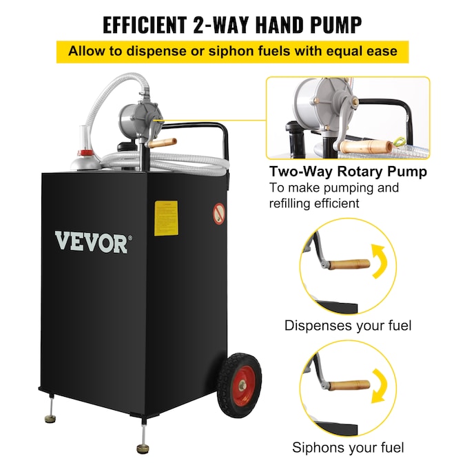 - Two Way Rotary Pump: Bi-directional hand rotary pump allows you to dispense or siphon fuels with ease, making pumping and refilling efficient by reversing the cranking direction; You can fill gas storage tanks faster without working up a sweat while safely transferring fuel