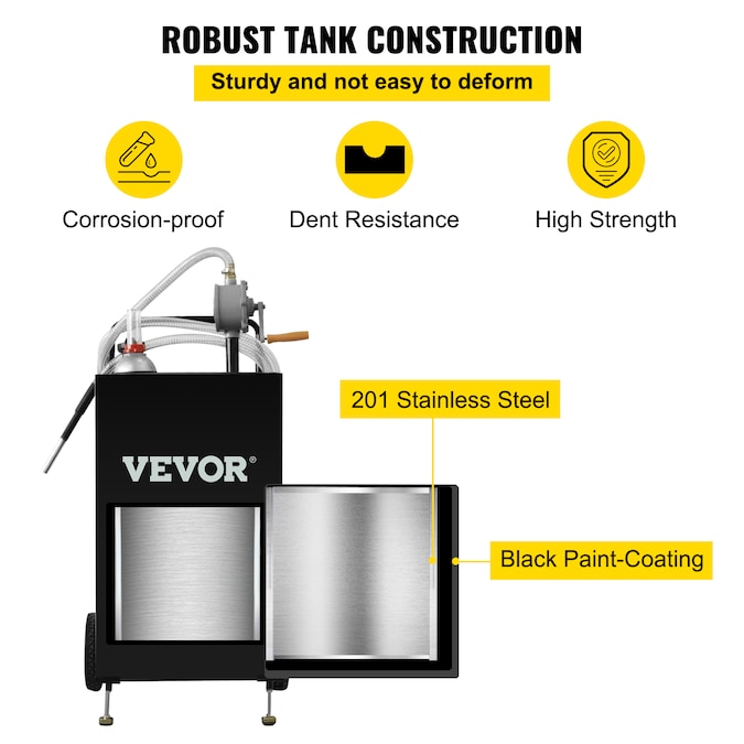 - Highly Robust Steel Tank: Made of durable 201 stainless steel material, this gas tank with pump is capable of handling changing weather conditions, and is resistant to UV radiation and dents; This high-quality material ensures long service life; Never get left behind