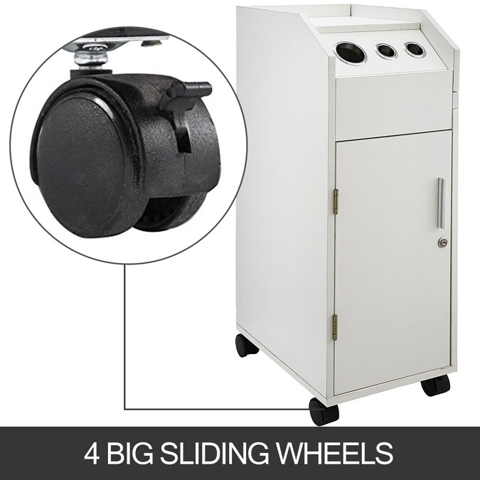 - Specification: Color: White; Material: MDF; Net Weight: 18.5kg (40.7lbs); Cart Dimensions: 12.6×16.5×33.8″ (32x42x86cm); Drawer Dimensions: 13.4×9.8×2.7″ (34x25x7cm); 3 Holes Diameter: 2.4″/1.6″/1.6″ (6.5cm/4cm/4cm)
