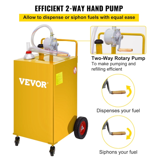 - Two Way Rotary Pump: Bi-directional hand rotary pump allows you to dispense or siphon fuels with ease, making pumping and refilling efficient by reversing the cranking direction; You can fill gas storage tanks faster without working up a sweat while safely transferring fuel