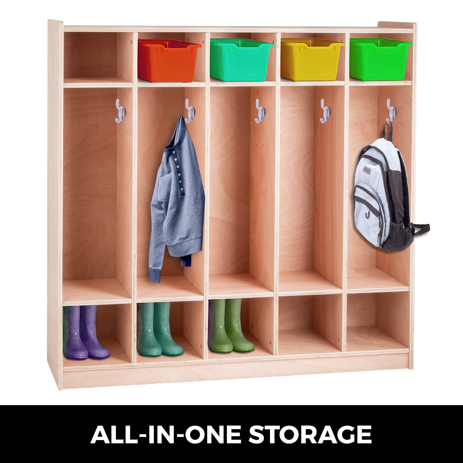 VEVOR 5 Grids Classroom Storage Cabinet Preschool Coat Cubby Lockers 48.4 inch Plywood Birch Coat Locker for Home Toddlers And Kids
