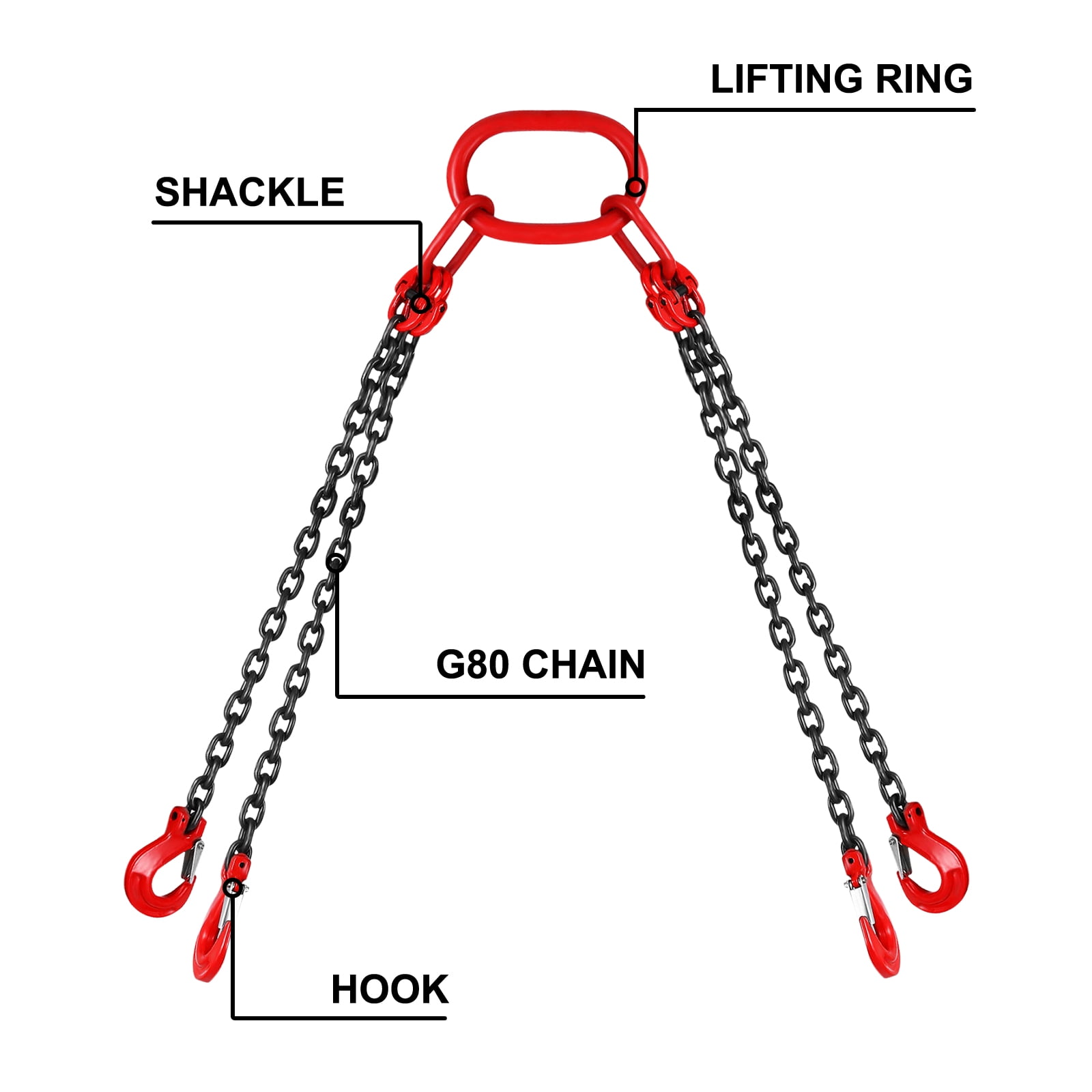 VEVOR 5ft Chain Sling 4 Legs 5/16″ X 5′ With Sling Hooks, Lifting Chain Sling G80 Alloy Steel