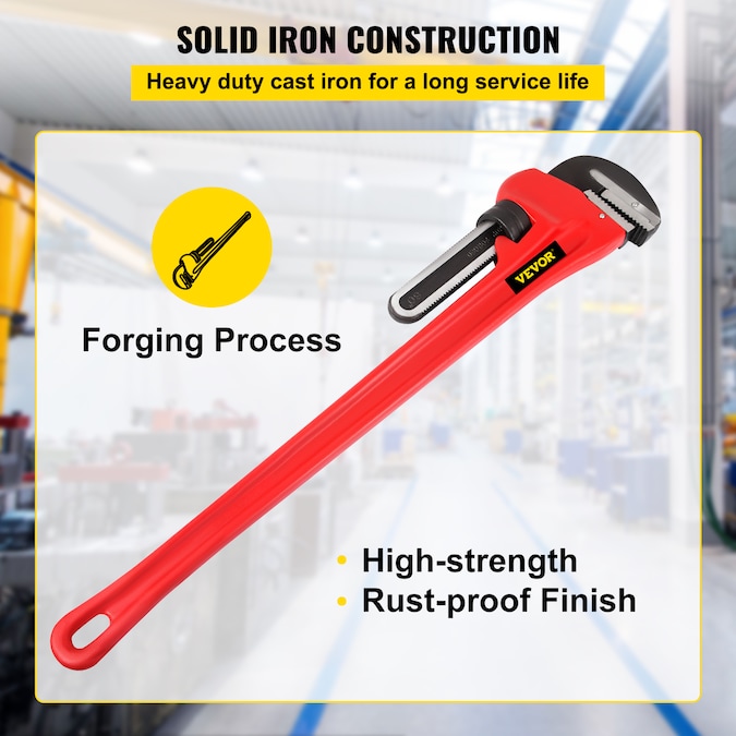 • The 60in pipe wrench is made of premium cast-iron, jaw is induction hardened, robust, and replaceable