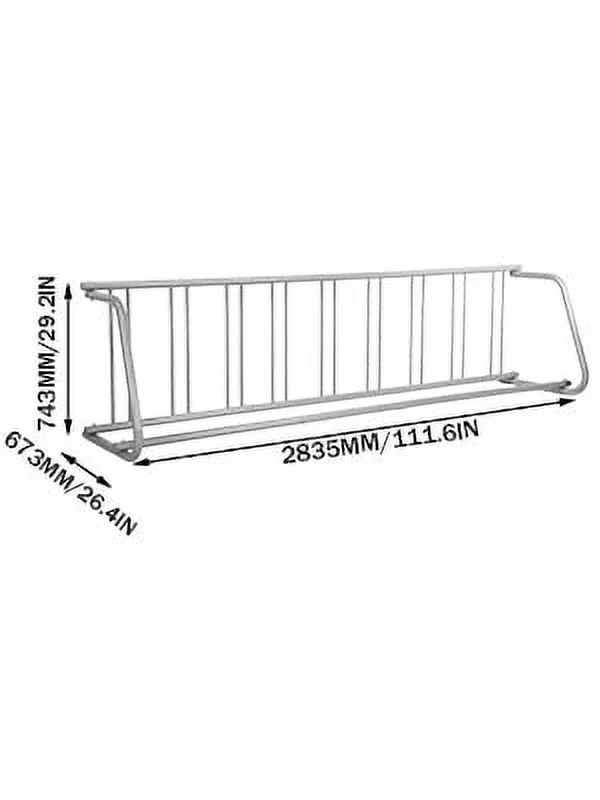 VEVOR 9 Holders Bicycle Stand Single-Side, Silver (9 Bicycle) Durable Steel Tube Frame: Constructed from premium powder-coated galvanized steel, this bike rack is resistant to scratches, wear, corrosion, and rust, ensuring long-lasting use Large Capacity: Designed to hold up to 9 bikes simultaneously, this stand prevents tilting and helps save space while keeping your area organized Exceptional Stability: The rack features a proper weight and a specially designed base for enhanced stability, eliminating the need to lean against a wall Easy Installation: All necessary accessories (screws and nuts) are included, making it simple to install and disassemble for convenient transport Versatile Use: Ideal for various settings including outdoor events, garages, front yards, backyards, bike events, and storefronts